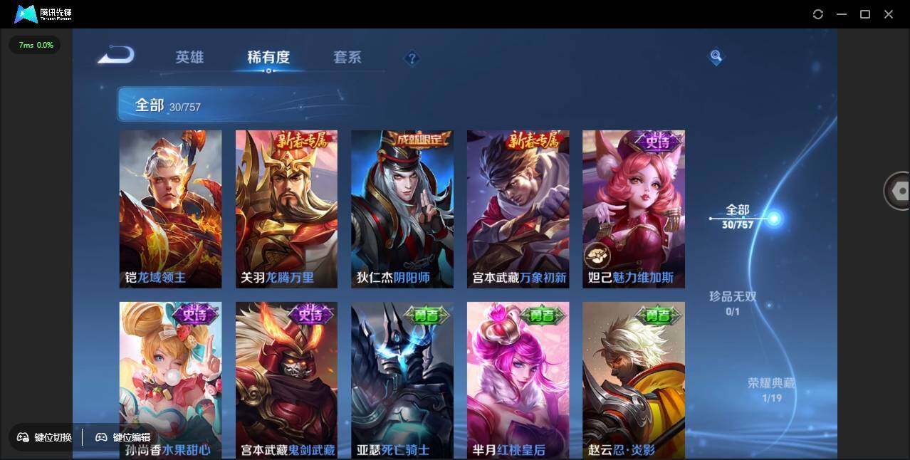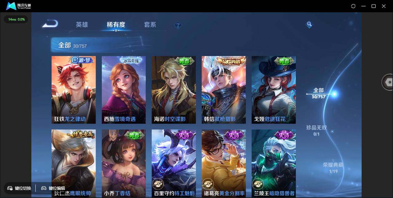 W4866】绝活打野小号.韩信弑枪猎影典藏-特工魅影.黄金分割率.龙之律动.暗隐猎兽者-安卓Q-无二次-贵3-48英雄-30皮肤-1典藏-9限定-11史诗-品质小号-2印记-贵族积分1736-营地