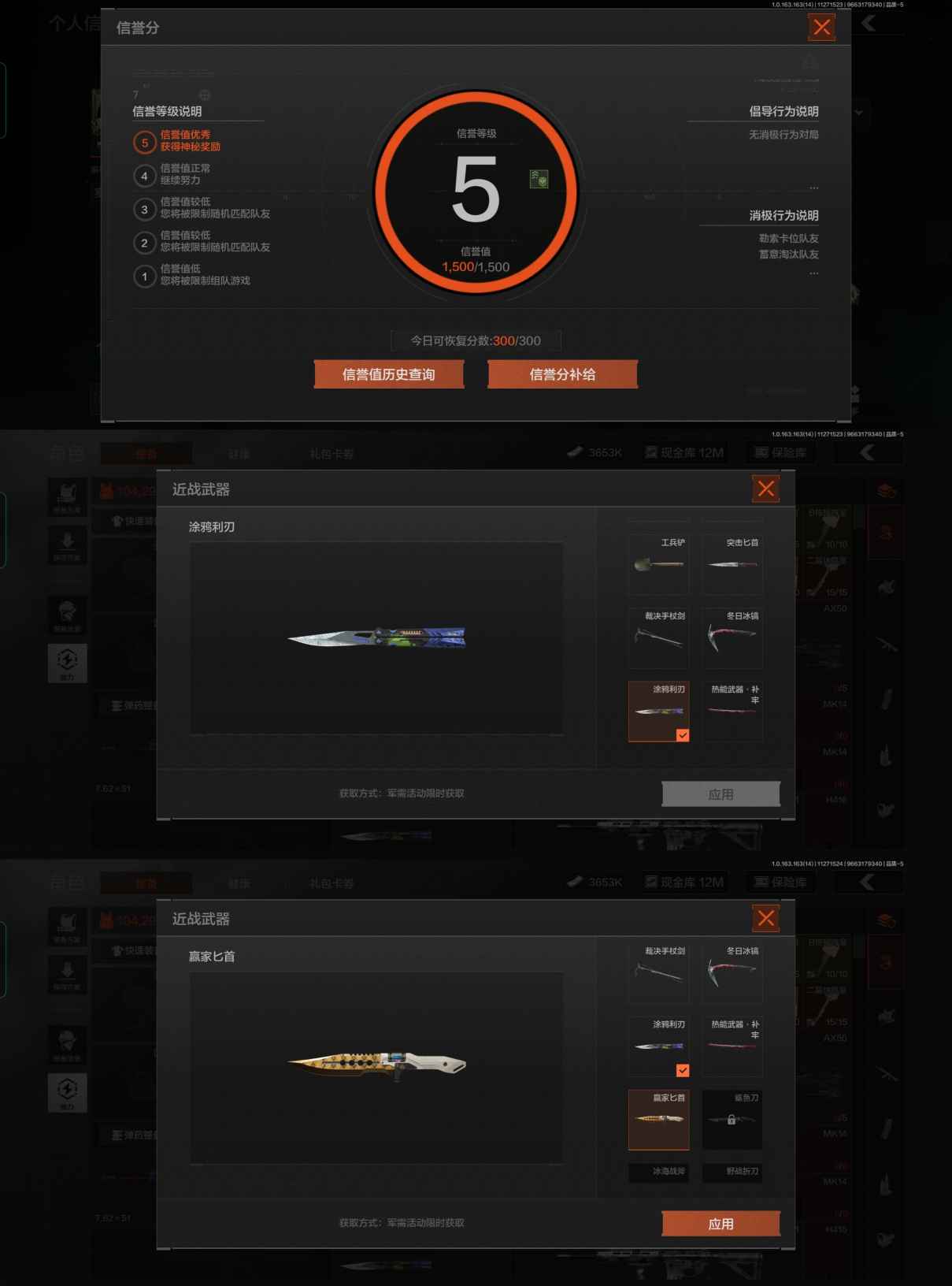 6刀皮 涂鸦利刃 裁决手杖剑 冬日冰镐 热能武器补牢 赢家匕首 突击匕首