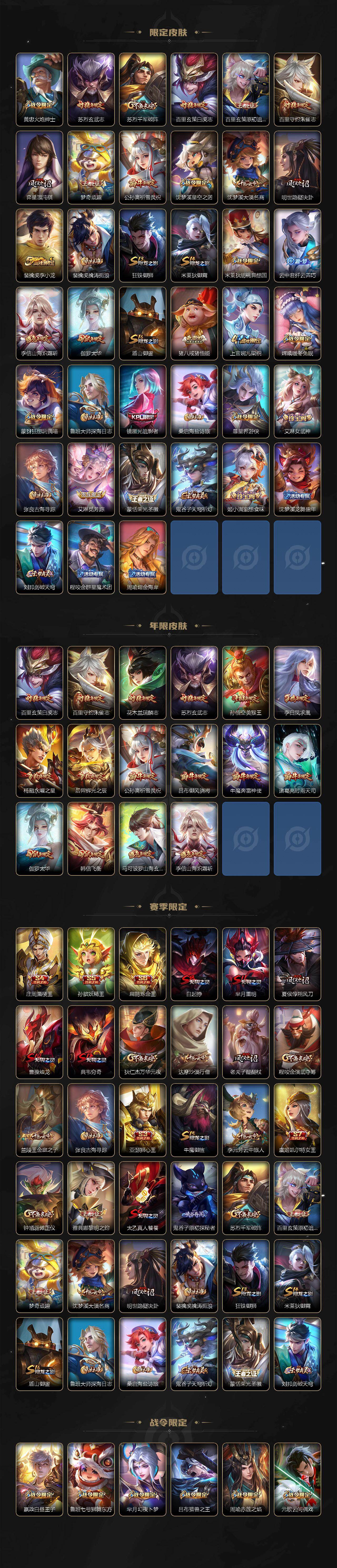 荣耀王者-126英雄-334皮肤-1典藏-19传说-90史诗