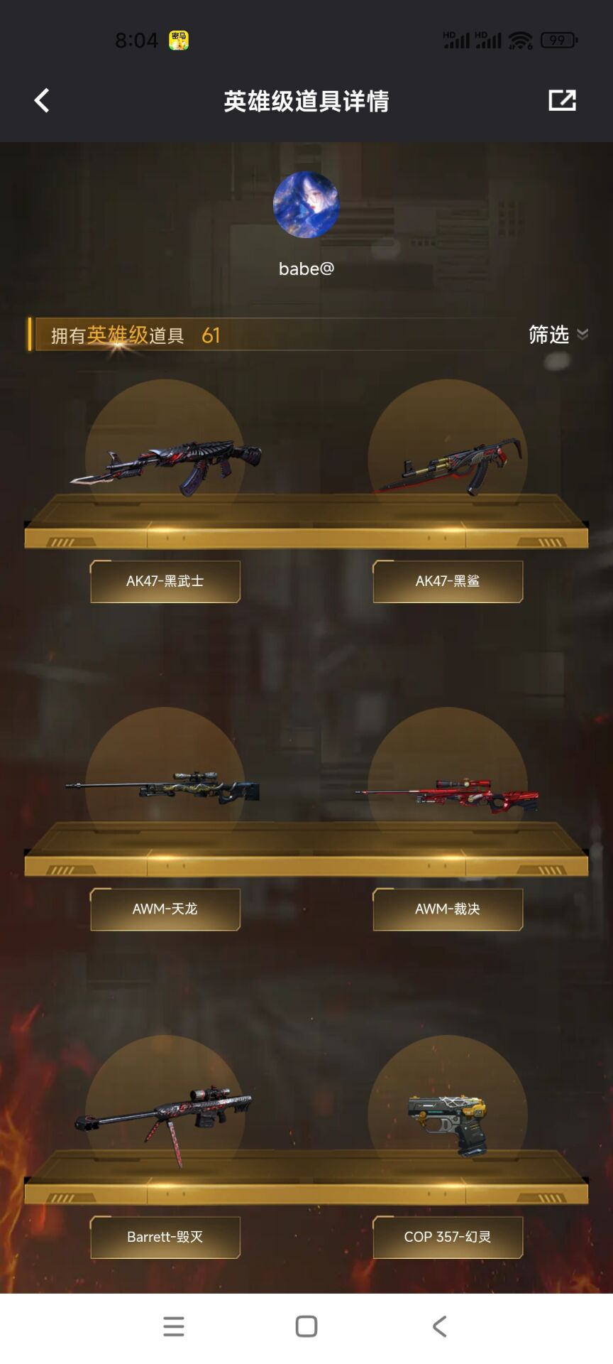 DSCF615[ 61V 17王者 幻神 6烈龙 cop幻灵 荣耀世冠柯尔特x2]【等级】102【区服】河南一区【英雄角色】1【英雄武器】60【王者级武器】高爆手雷-雷霆王者 王者之灵-觉醒版 王者之戮 王者之啸-觉醒版 王者之啸-觉醒版 王者之魄烟雾弹 王者之魄闪光弹 王者之魄闪光弹 王者冰魄 王者之魄闪光弹 王者之魄高爆手雷 王者之魄闪光弹 王者之心 王者之心 王者之魄-觉醒版【英雄级角色】葵 葵-阿尔法武装【英雄级武器】烟雾弹-玄豹 丛林匕首-玄豹 炼狱-百战金芒 麒麟刺-百战金芒 M4A