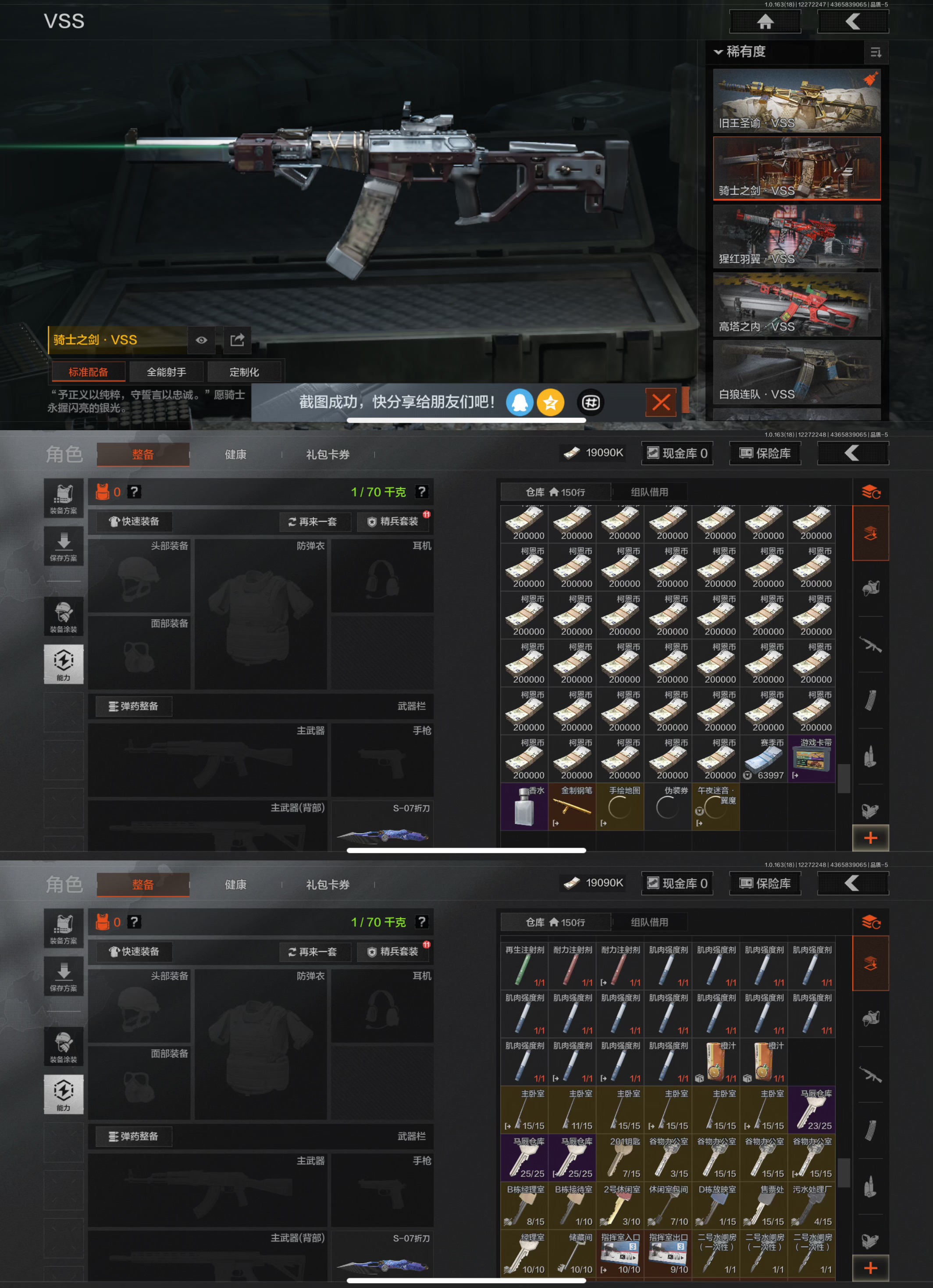 38.3m仓库 赢家匕首,苍穹利爪,S07折刀,热能武器补牢,7金枪
