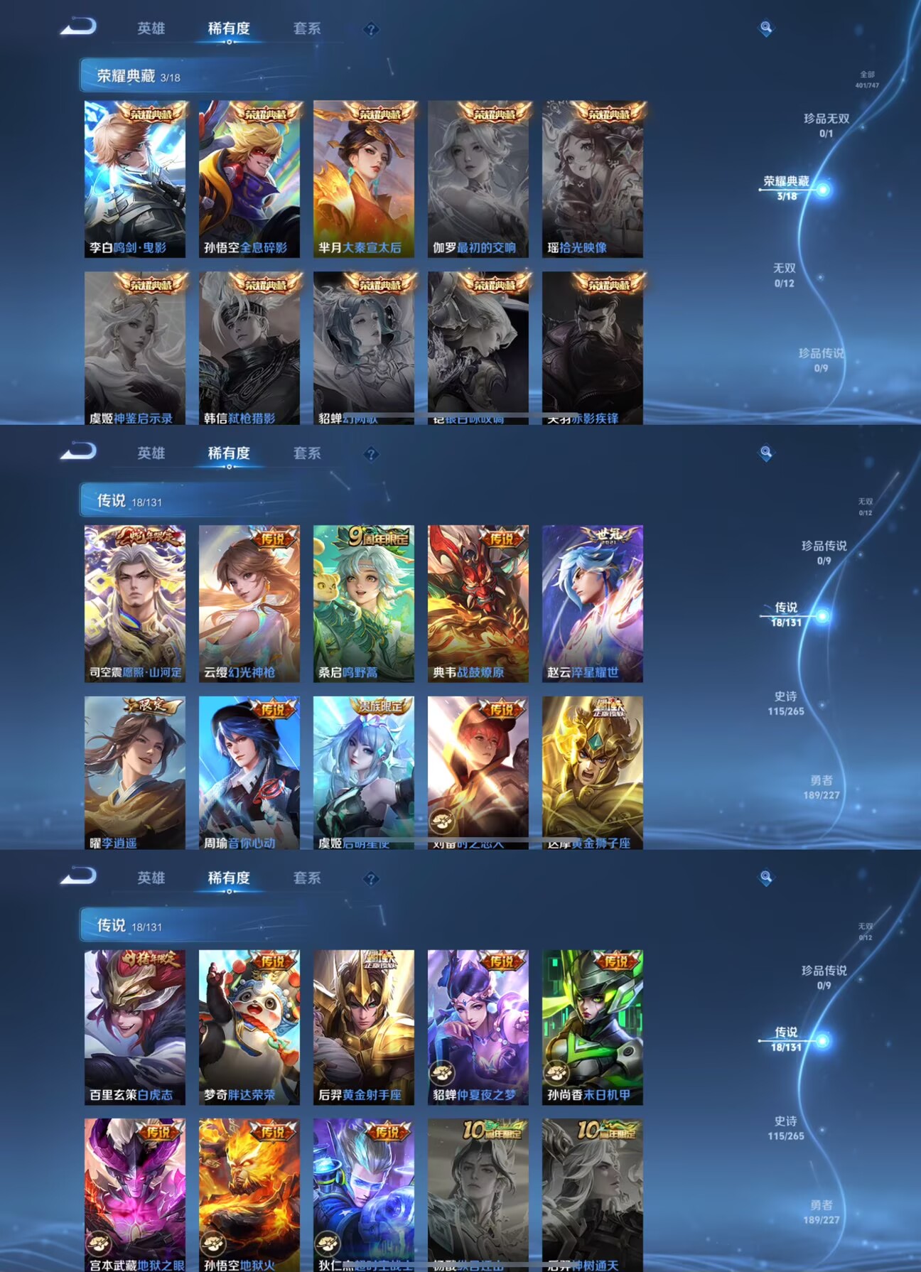 401皮肤v8 3典藏 18传说 6星传说 时之思念 幽冥火 幽冥之眼 星际治安官 未来机甲 金色仲夏夜 50段打野 50段对抗路 44段发育路 1.1w小国标刘备 11金标