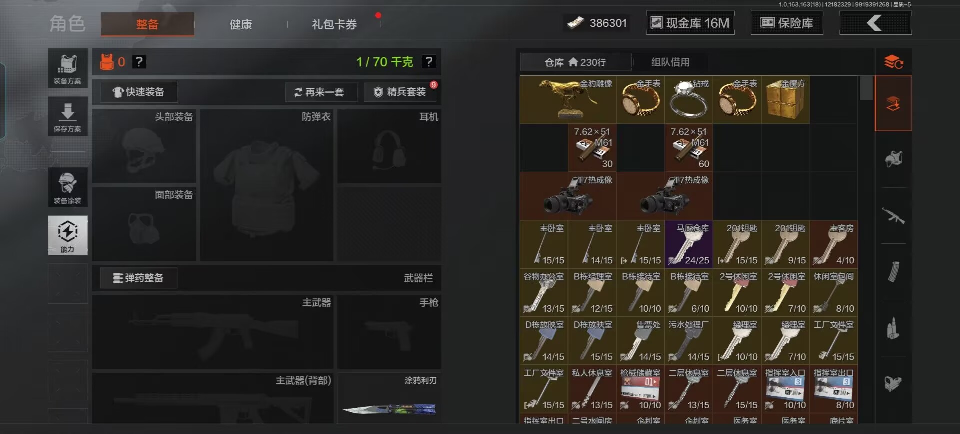 DSTW1784【仓库价值35.2M 柯恩币386301 5套装 6刀 工兵铲 开山刀 赢家匕首 补牢 突击匕首 涂鸦利刃】安卓Q-等级30-仓库价值35.2m-科恩币386301【现金库16M】【套装】粉绒暴击·套装 鎏金街头套 速降反光·户外运动套装 都市夜影套装 街区守卫 【刀皮】 来战·开山 赢家匕首 热能武器·补牢 突击匕首 涂鸦利刃 工兵铲