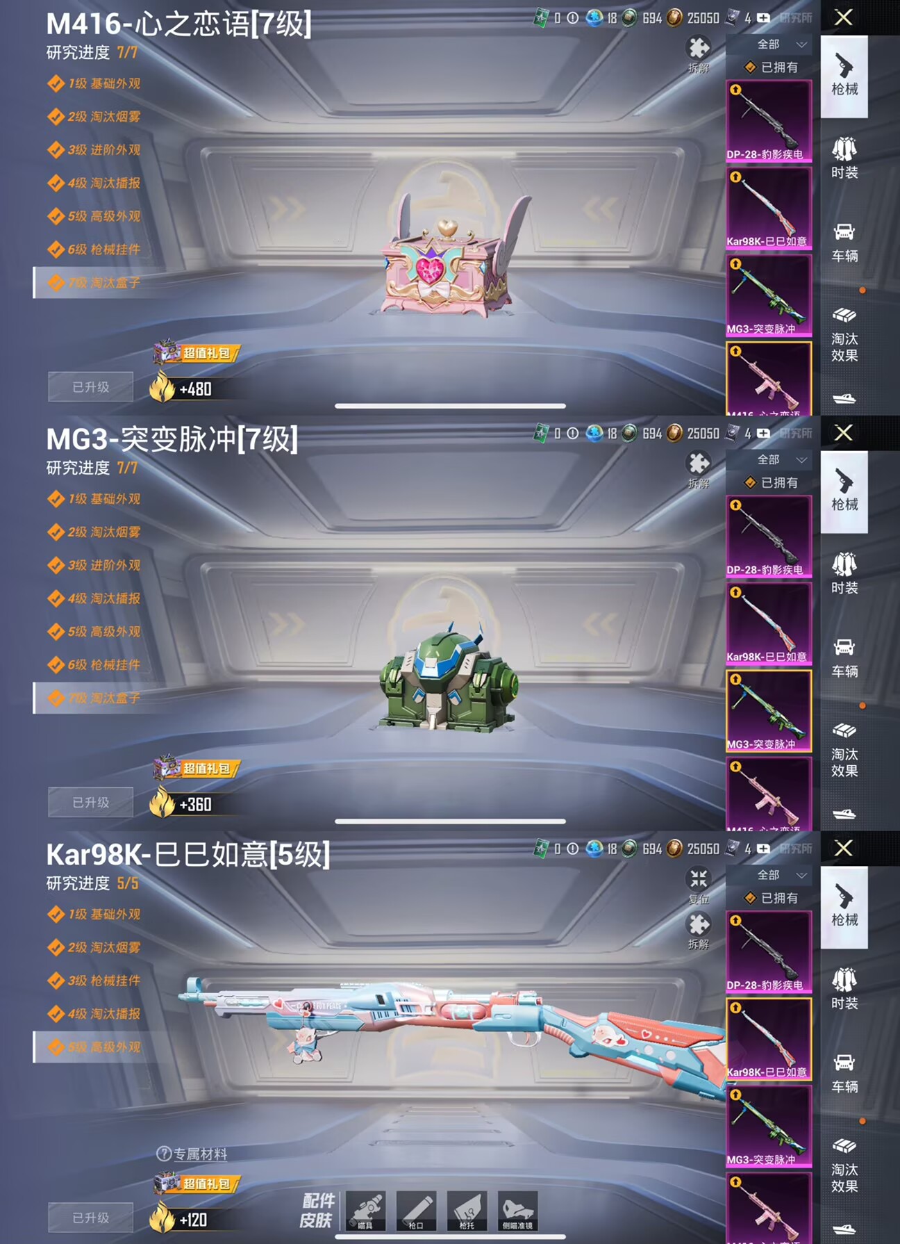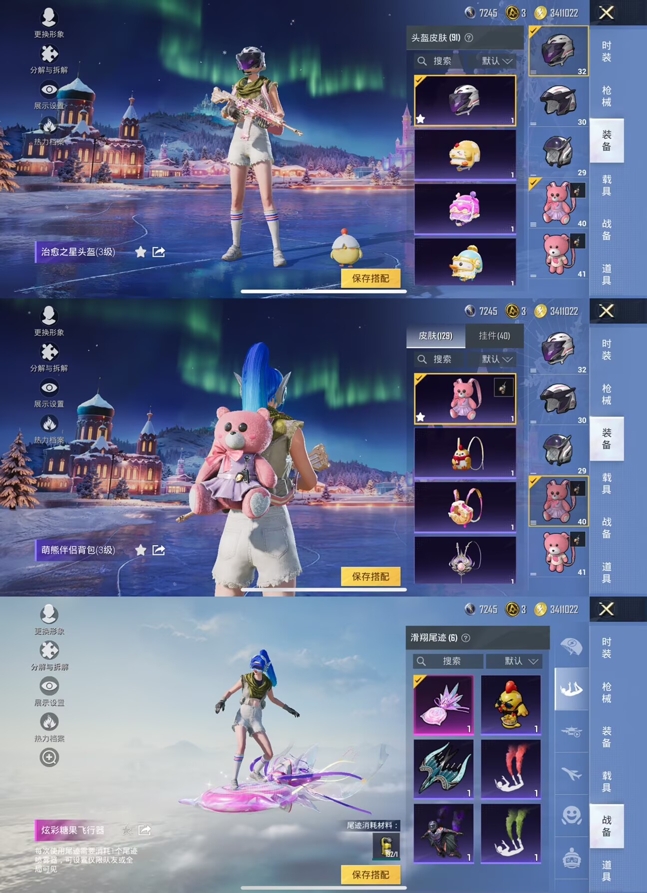 战神框 2稀有4粉装4特效枪 粉熊背包 梦幻火箭 心之恋语7级