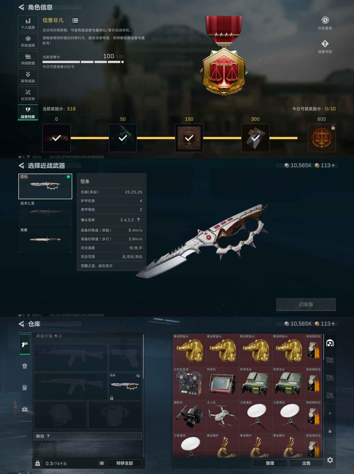 总价值119.6M-哈夫币10565k-烽火地带等级60-烽火地带段位黑鹰
