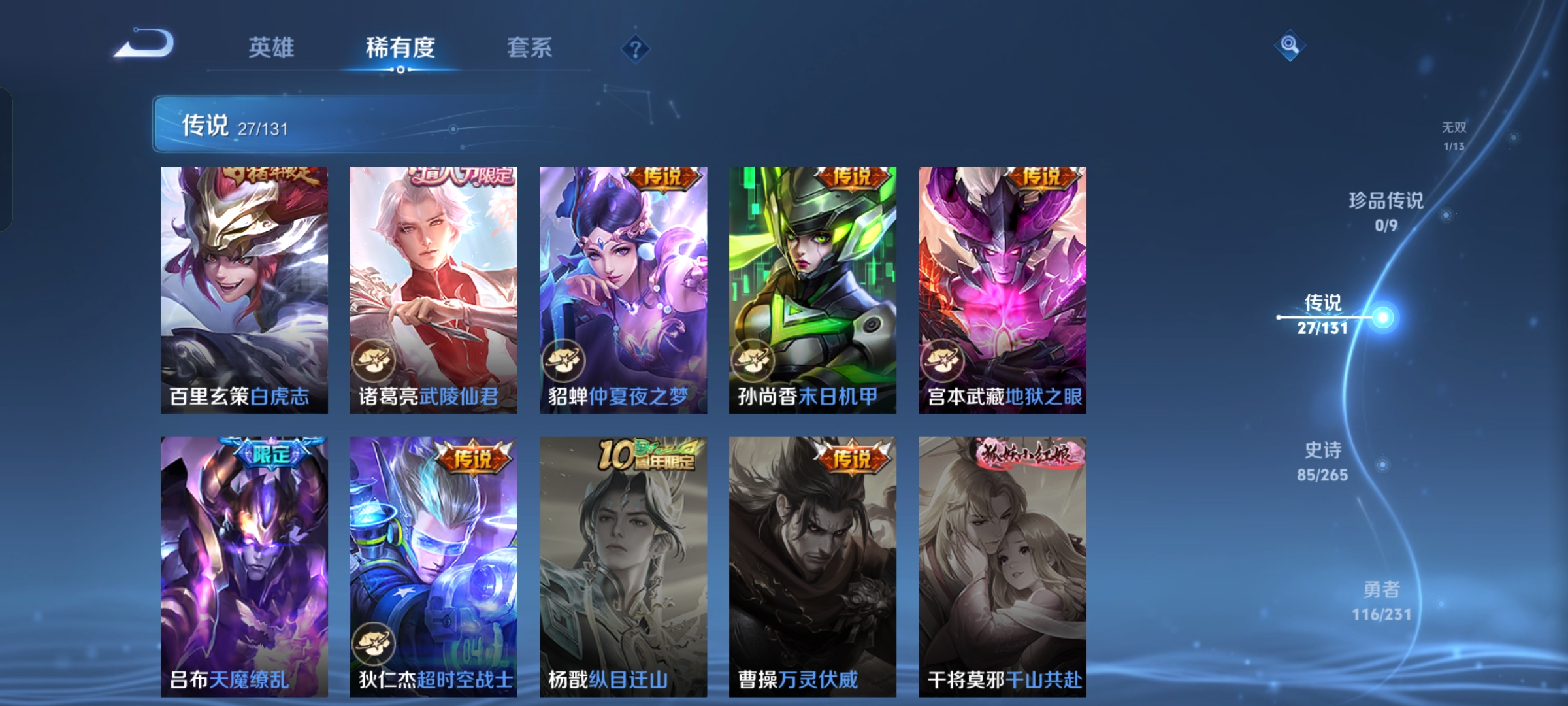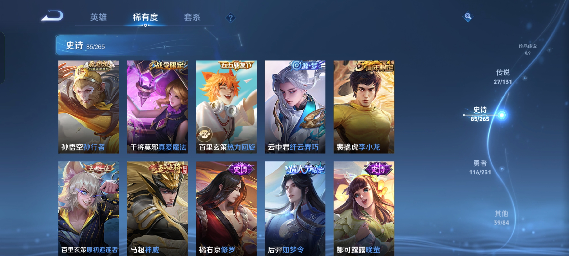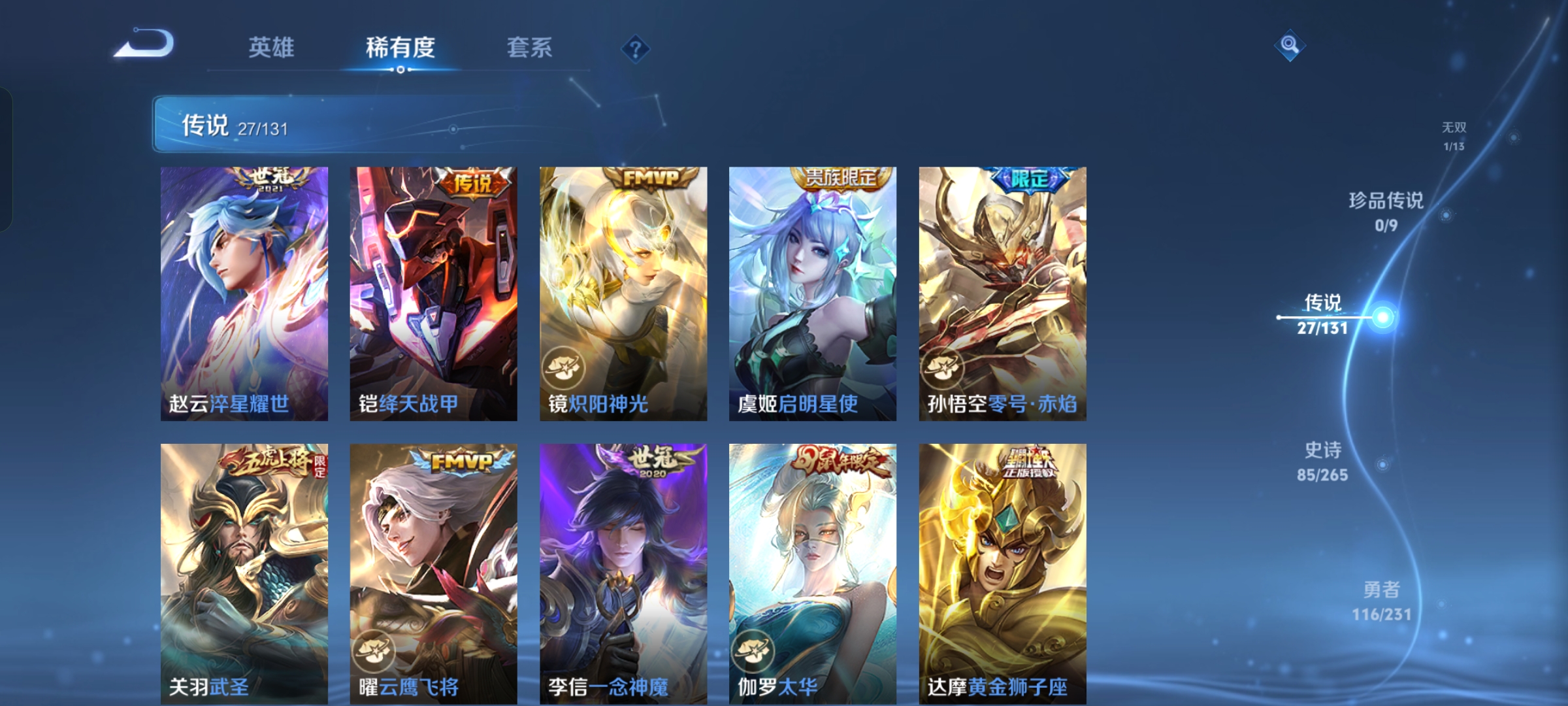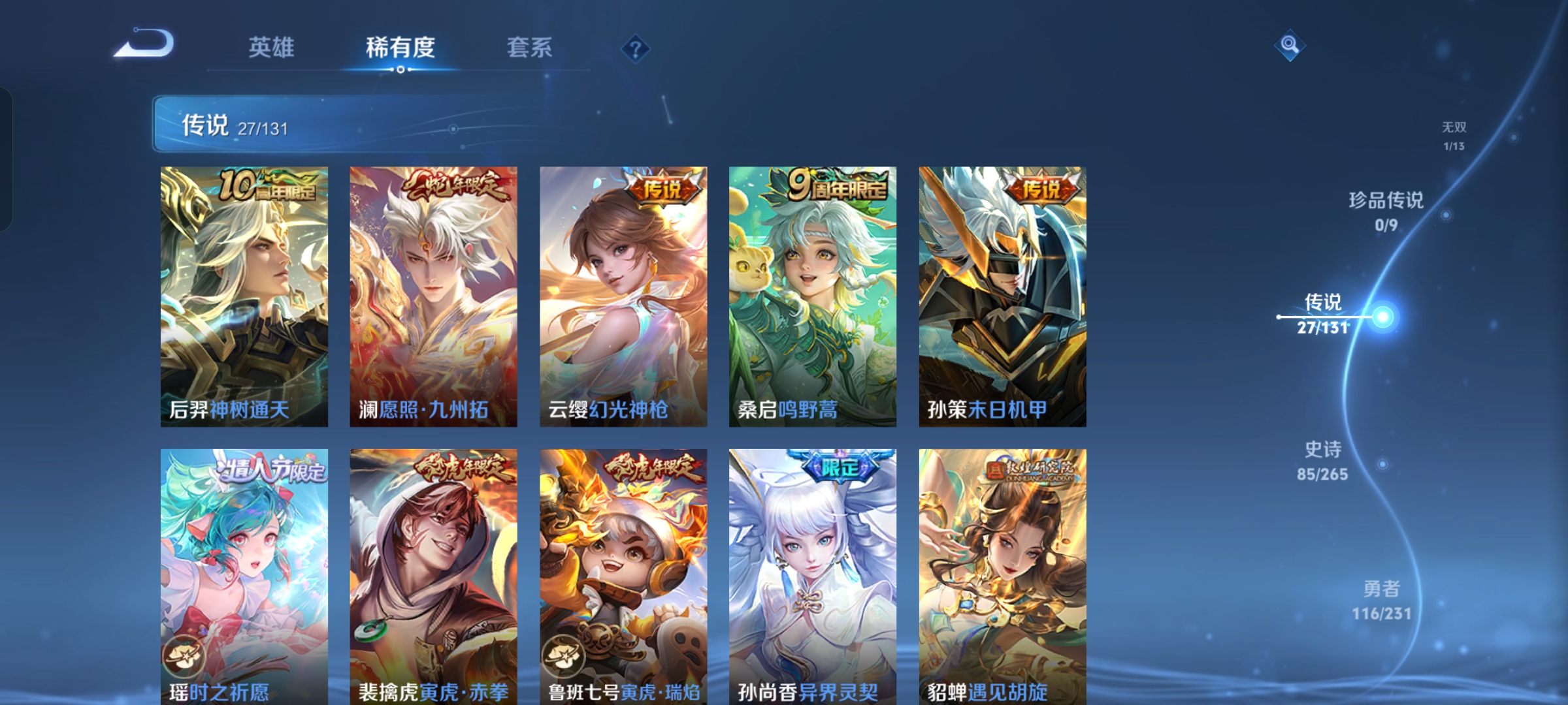 DSW2641【v8 27传说1典藏李白1无双耀 星传说1幽冥之眼 荣耀水晶一颗未使用】安卓Q-269皮肤-127英雄 【无双皮肤】 器灵·螭龙剑 【典藏皮肤】 鸣剑·曳影 【传说皮肤】 鸣野蒿 幻光神枪 愿照·九州拓 白虎志 黄金狮子座 超时空战士 仲夏夜之梦 遇见胡旋 太华 地狱之眼 武圣 炽阳神光 绛天战甲 一念神魔 寅虎·瑞焰 天魔缭乱 寅虎·赤拳 末日机甲 末日机甲 异界灵契 零号·赤焰 时之祈愿 云鹰飞将 启明星使 淬星耀世 武陵仙君 【史诗皮肤】 茶境仙 傲雪梅枪 如梦令 青春决赛
