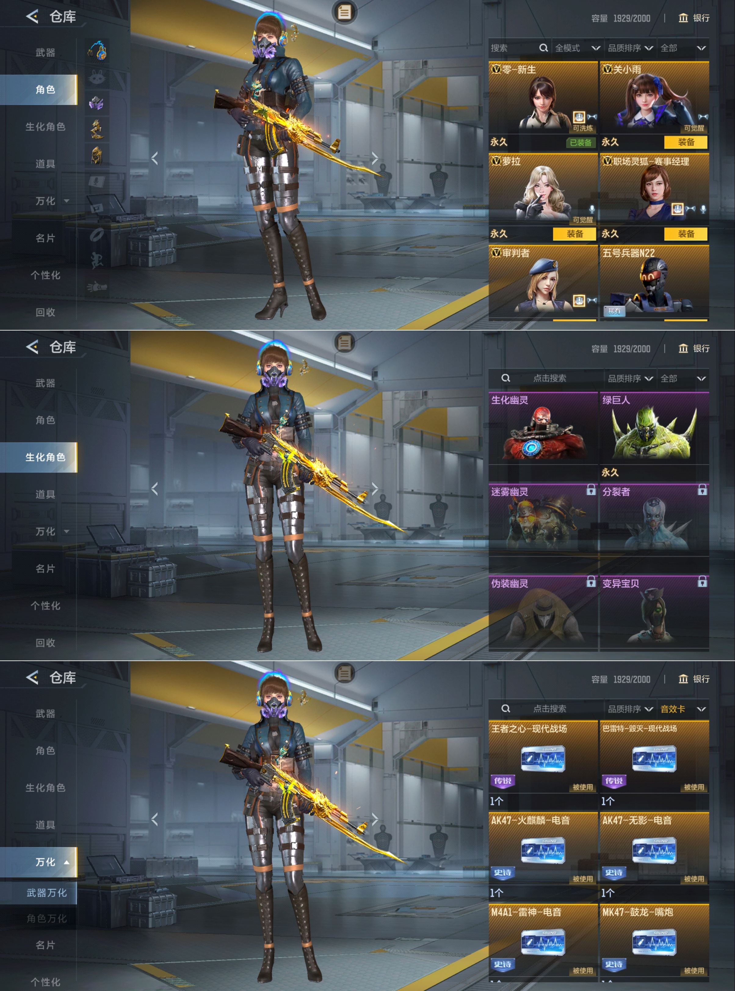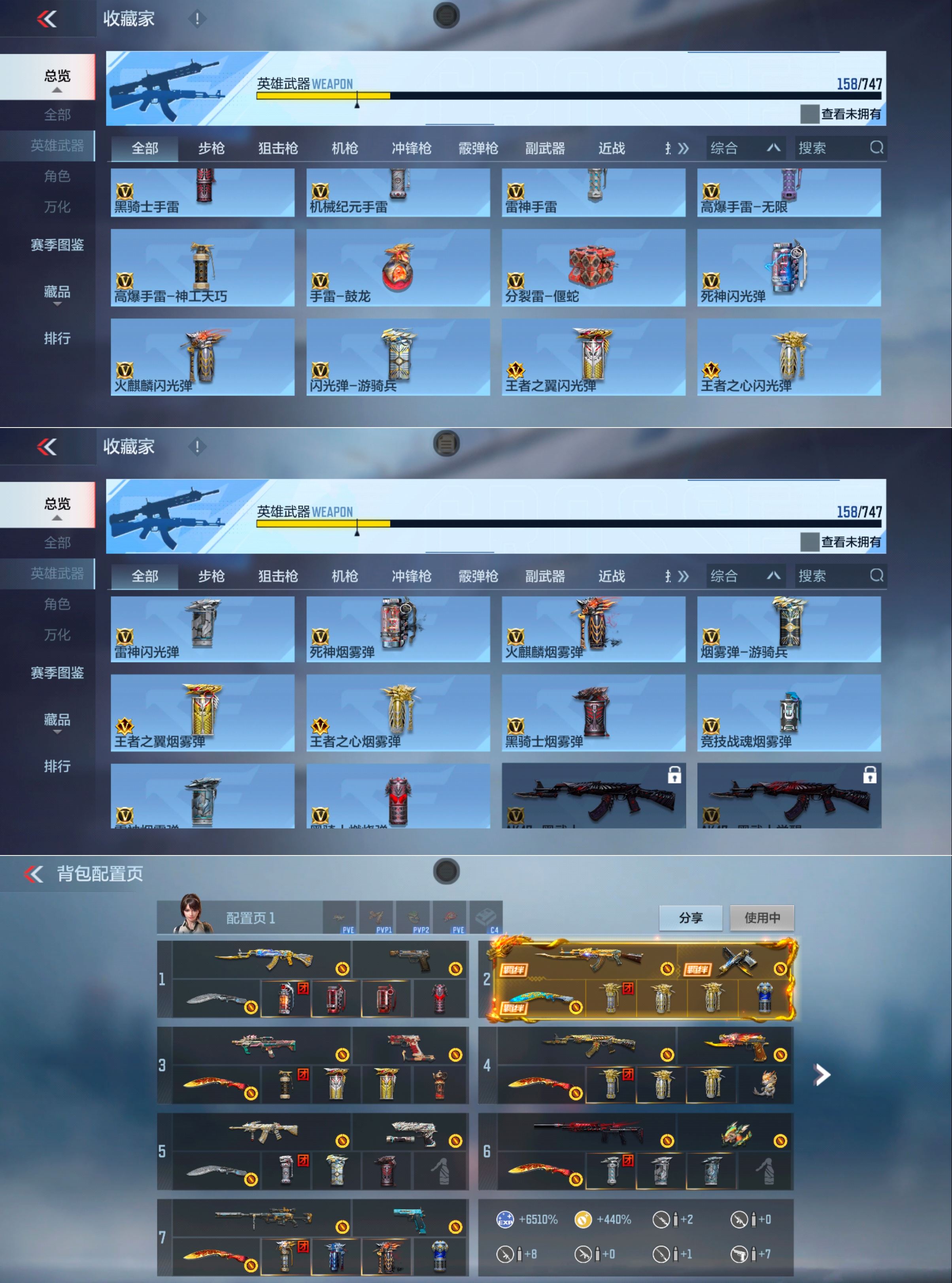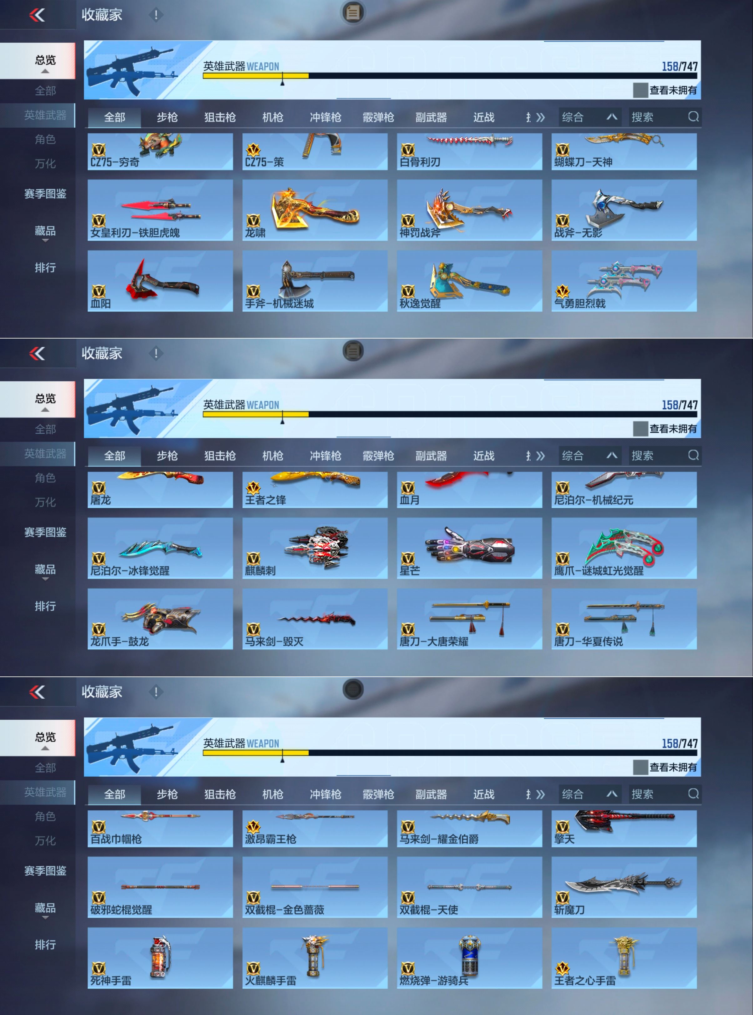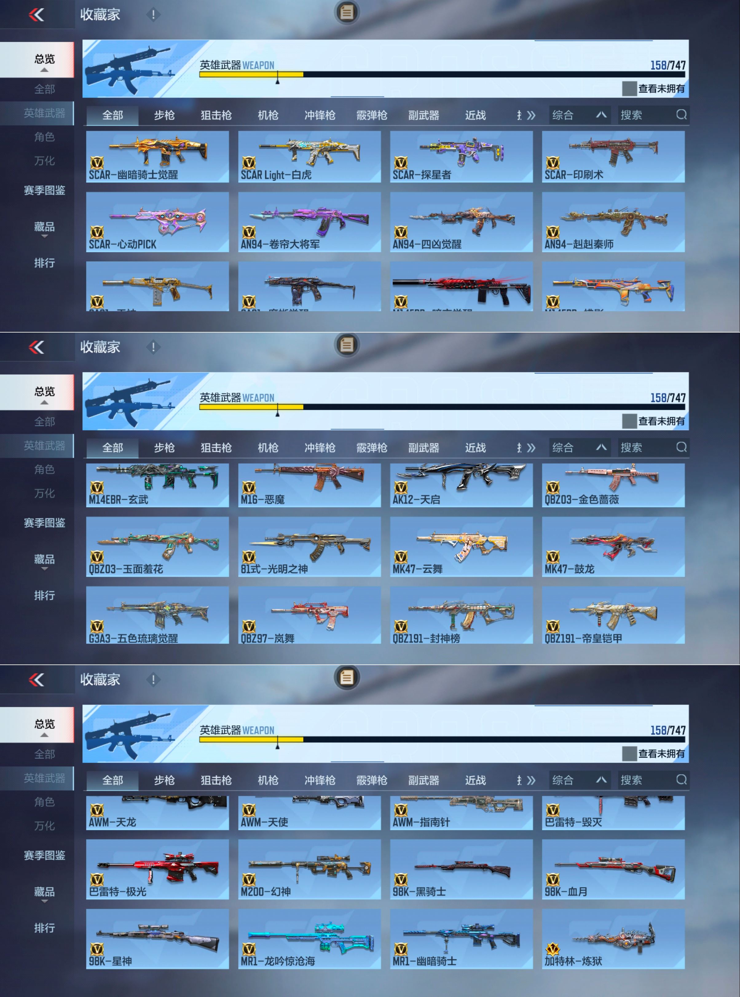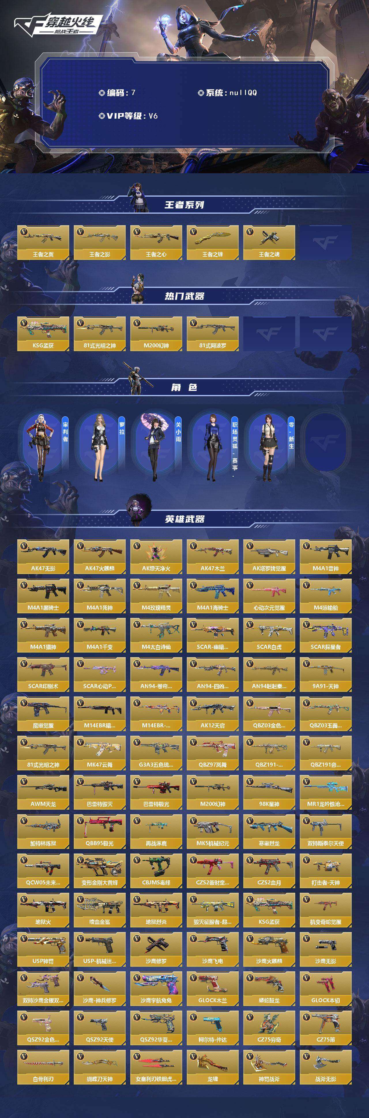 【英雄武器】: AK47-无影 *2 ,AK47-火麒麟 ,AK47-燎天净火 ,AK47-木兰,AK47-塔罗牌觉醒 ,M4A1-雷神*2