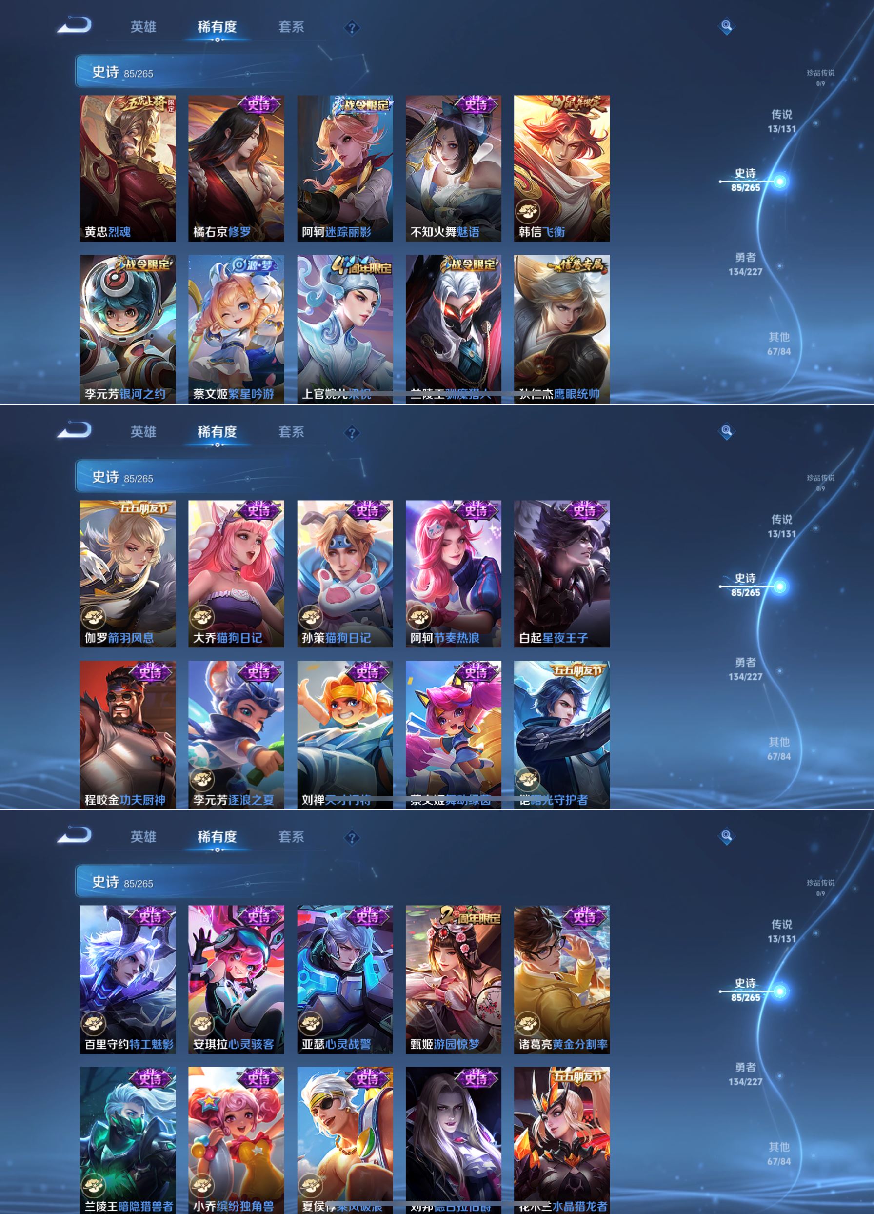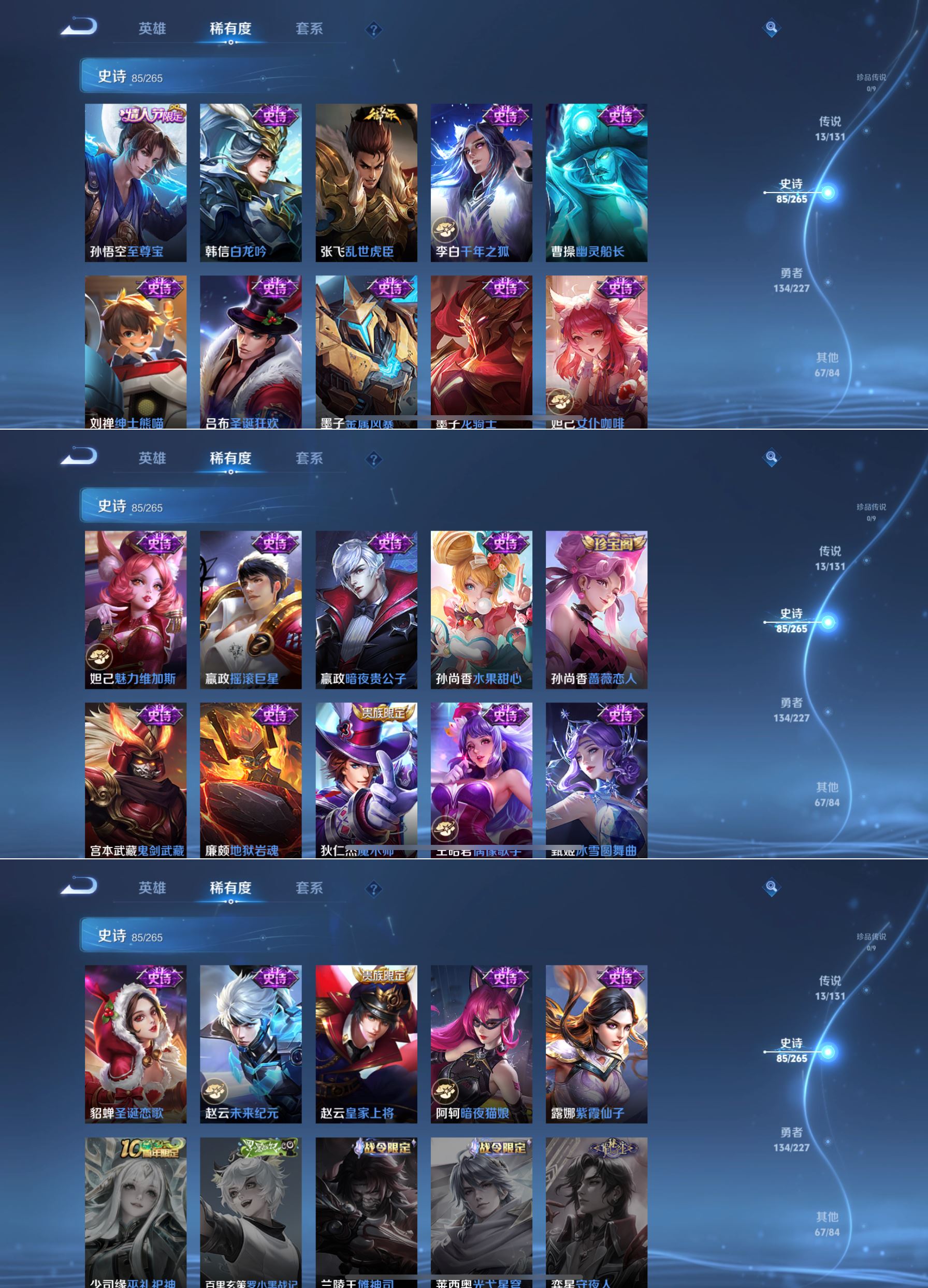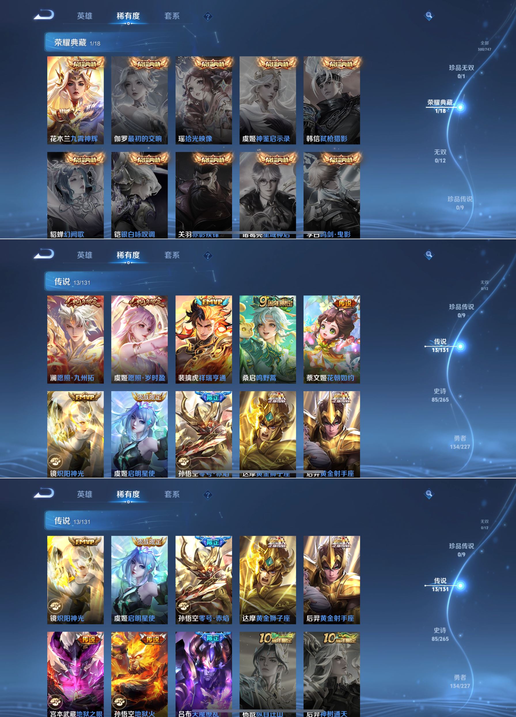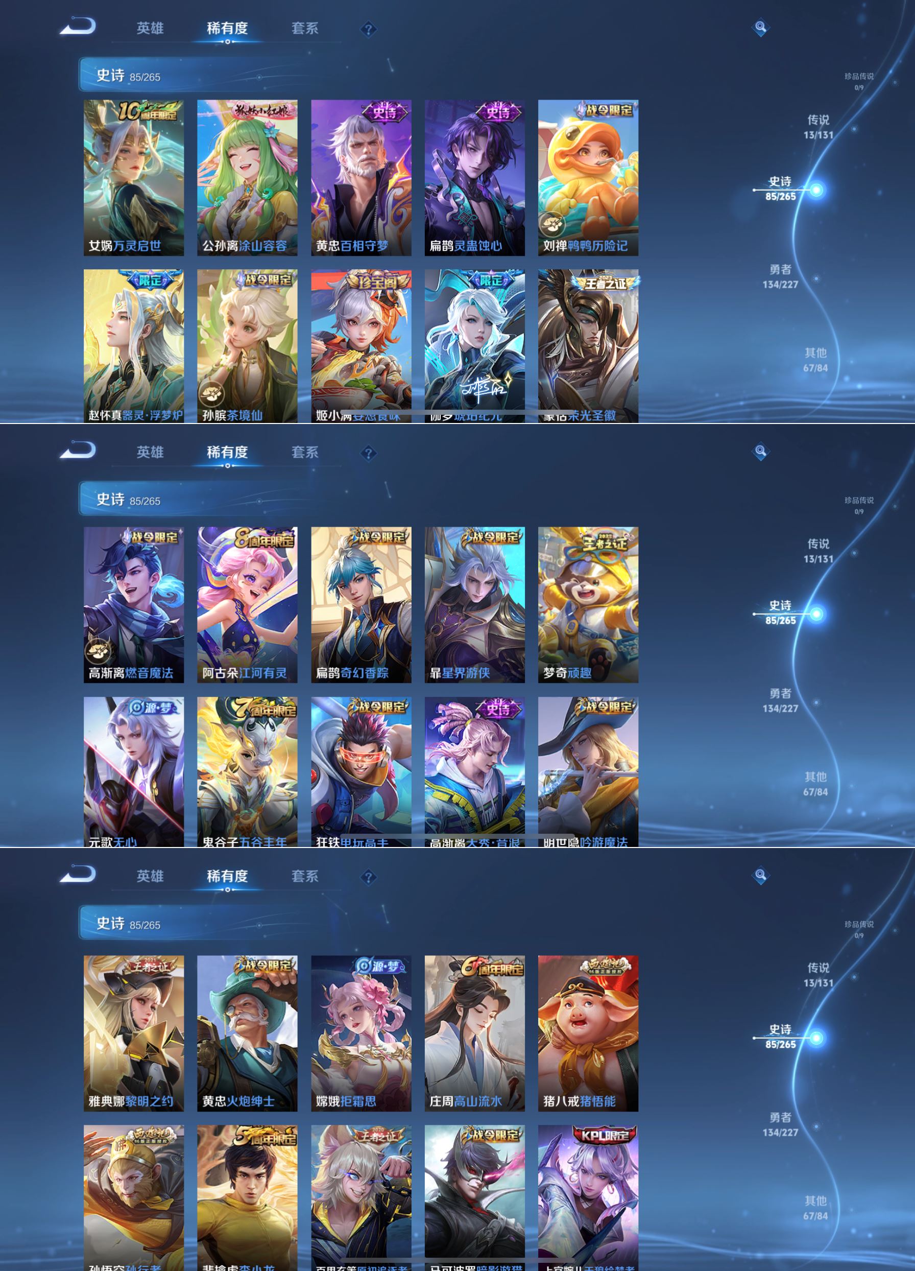 最强王者-124英雄-300皮肤-1典藏-13传说-85史诗