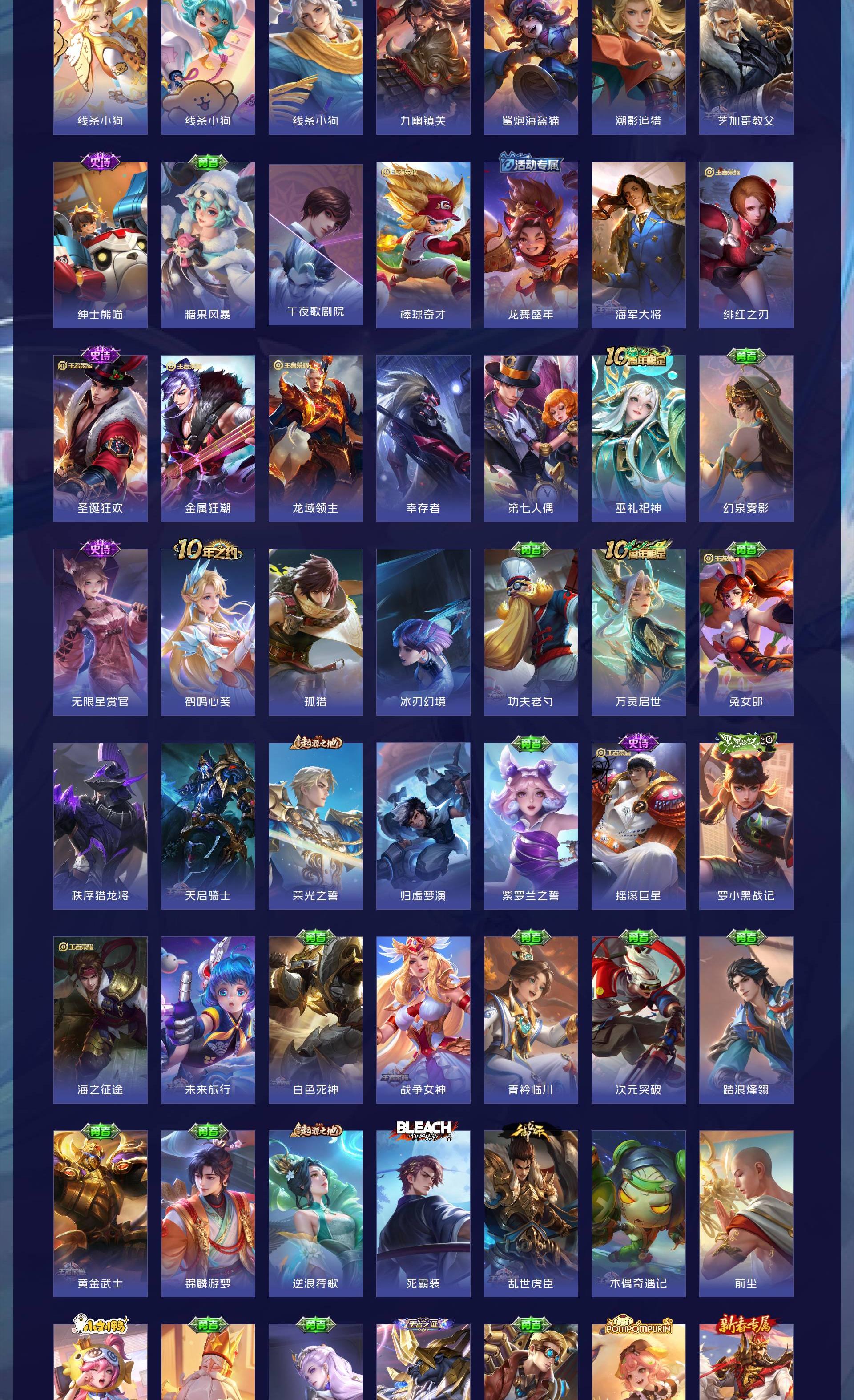 有新出的线条小狗,196个皮肤,9个传说 1个荣耀典藏瑶 一个无双 瑶