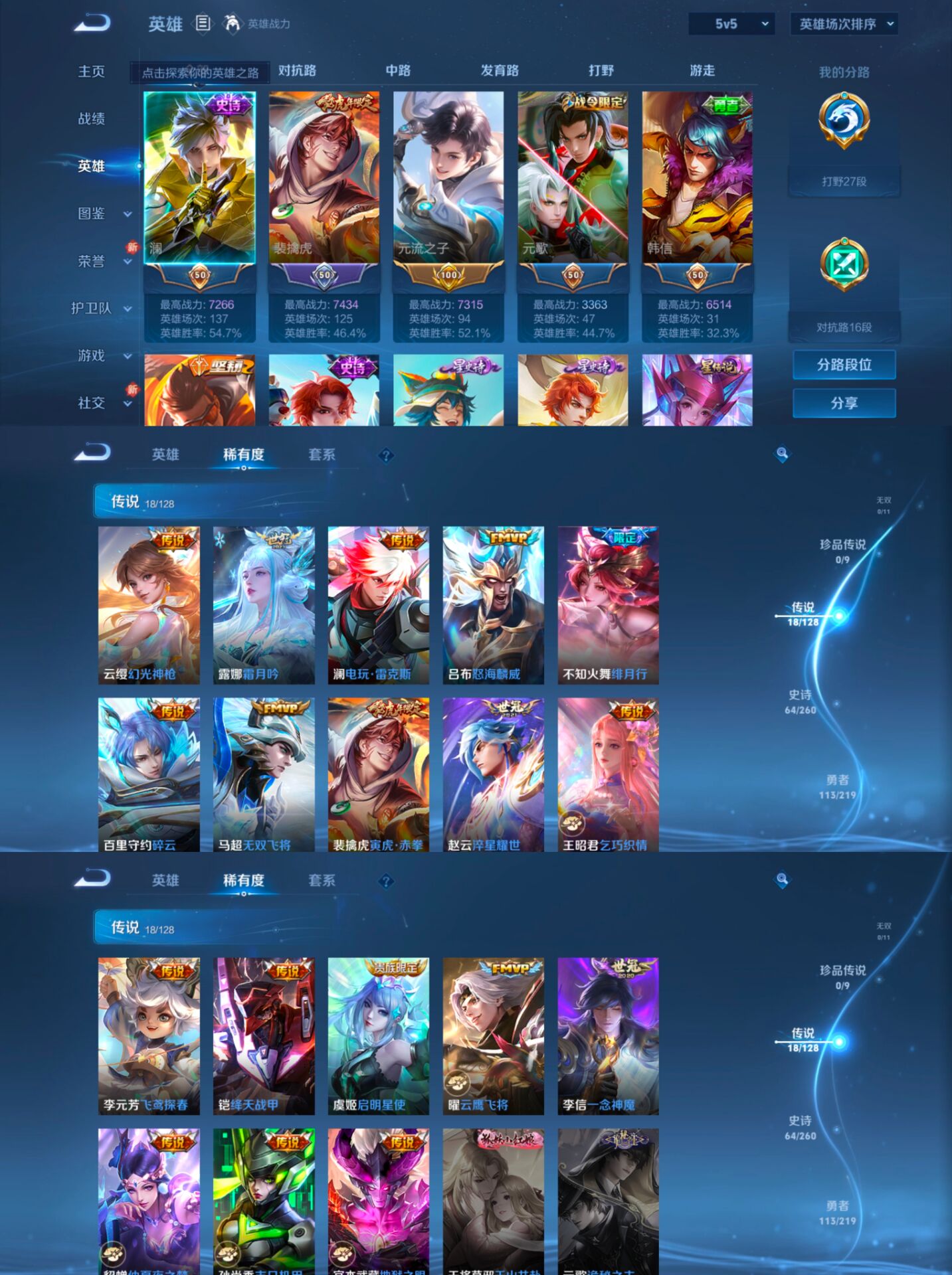 DSW2118【2星元18传说V8 金标元流之子 王者61星】安卓Q-257皮肤-123英雄