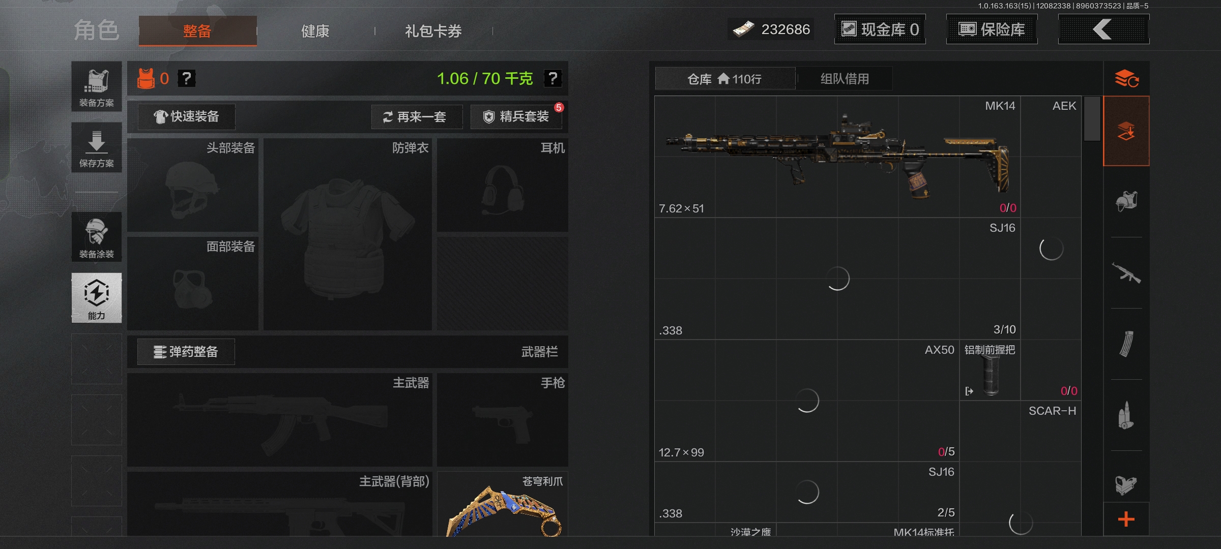 仓库价值1.3M 苍穹利爪 07折刀 -等级30-科恩币232686