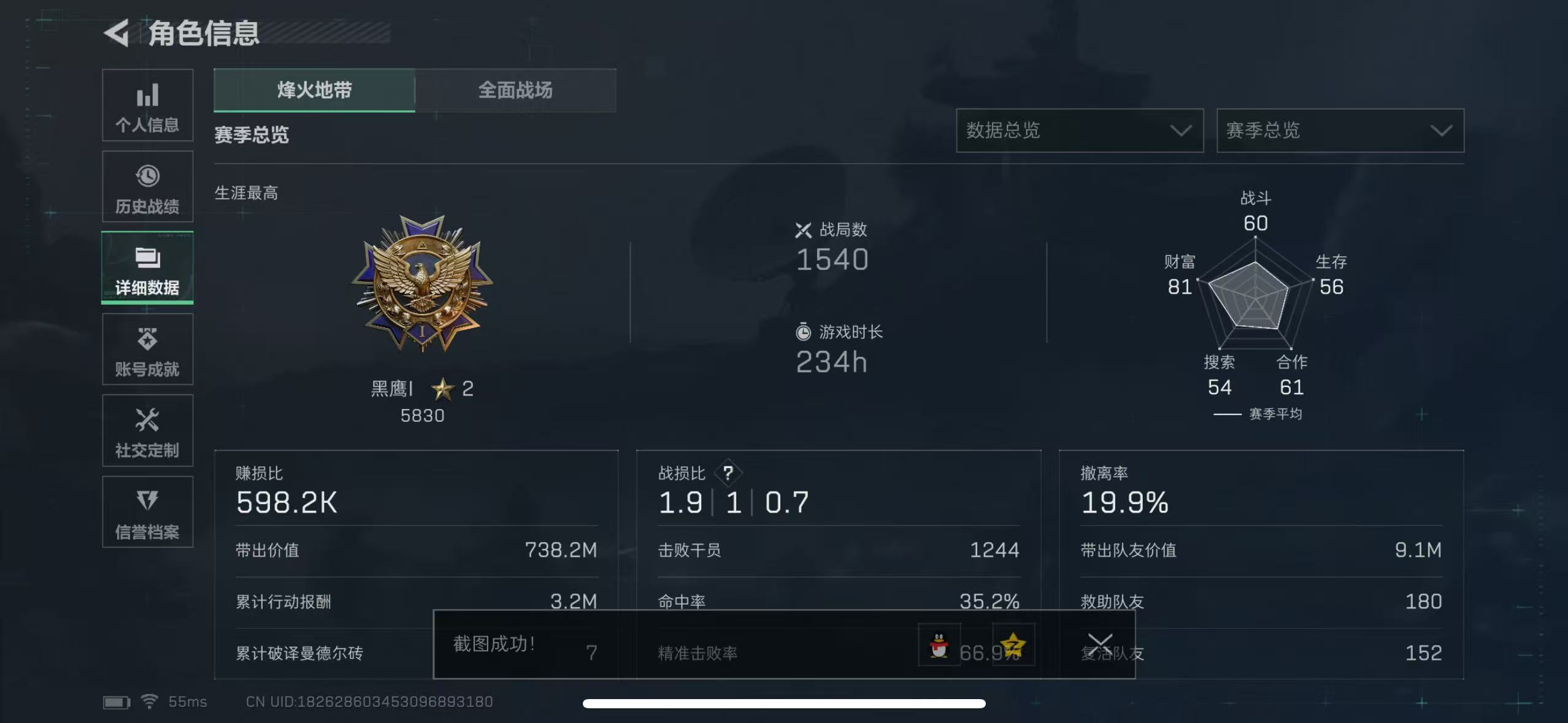 总价值40.3M-哈夫币88405-烽火地带等级60-烽火地带段位黑