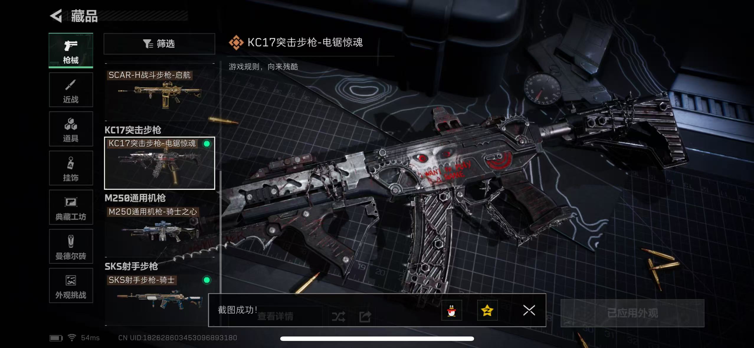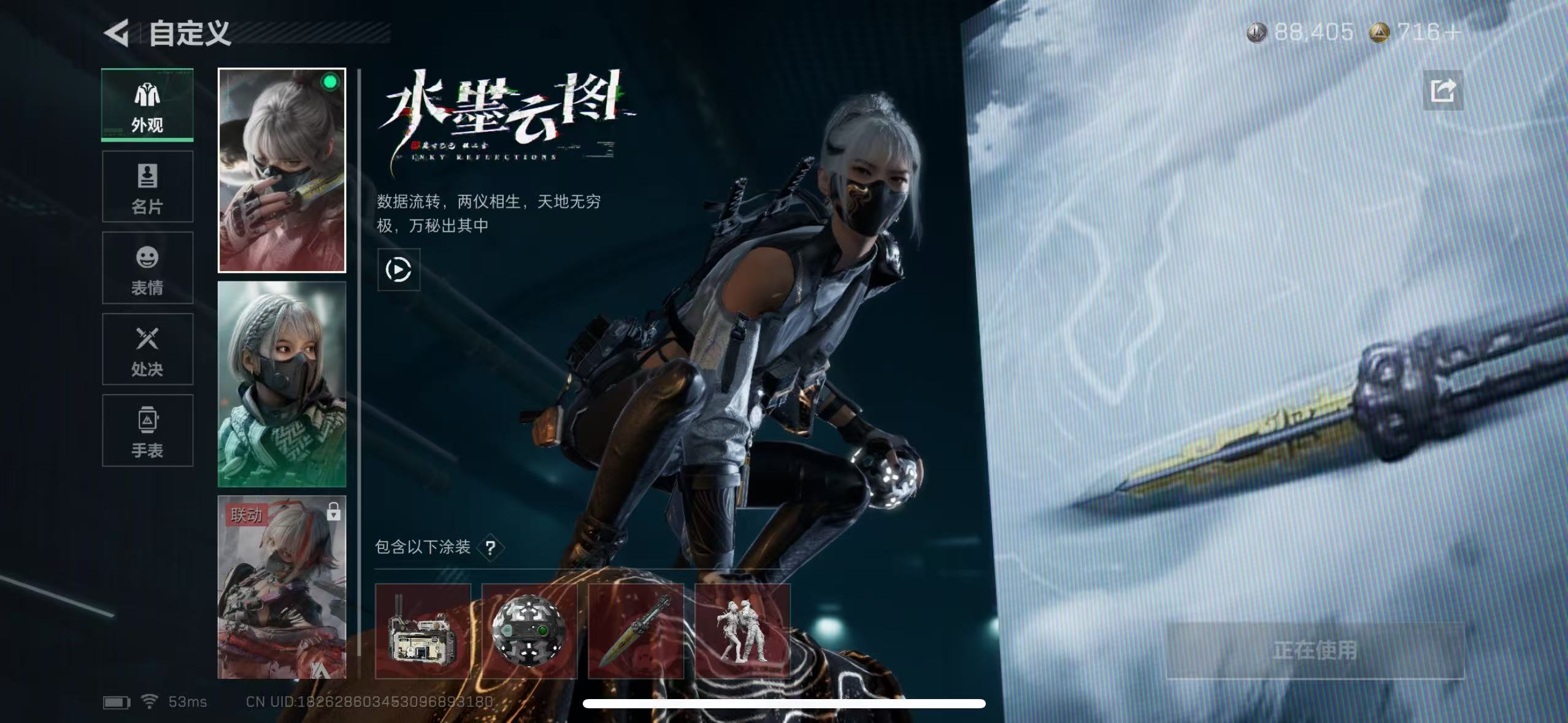 ZMSJ851三端互通-总价值40.3M-哈夫币88405-烽火地带等级60-烽火地带段位黑鹰【刀皮】黑鹰【干员皮肤】电锯惊魂 金牌射手 水墨云图 【枪皮】SCAR-H战斗步枪-启航 KC17突击步枪-电锯惊魂 M250通用机枪-骑士之心 SKS射手步枪-骑士 M4A1突击步枪-阿米娅 SG552突击步枪-运动员 SCAR-H战斗步枪-水墨云图 【藏品】典藏-S7赛季-隐藏款黑夜猎手 黄金视野 挂饰-水墨云图 挂饰-维什戴尔