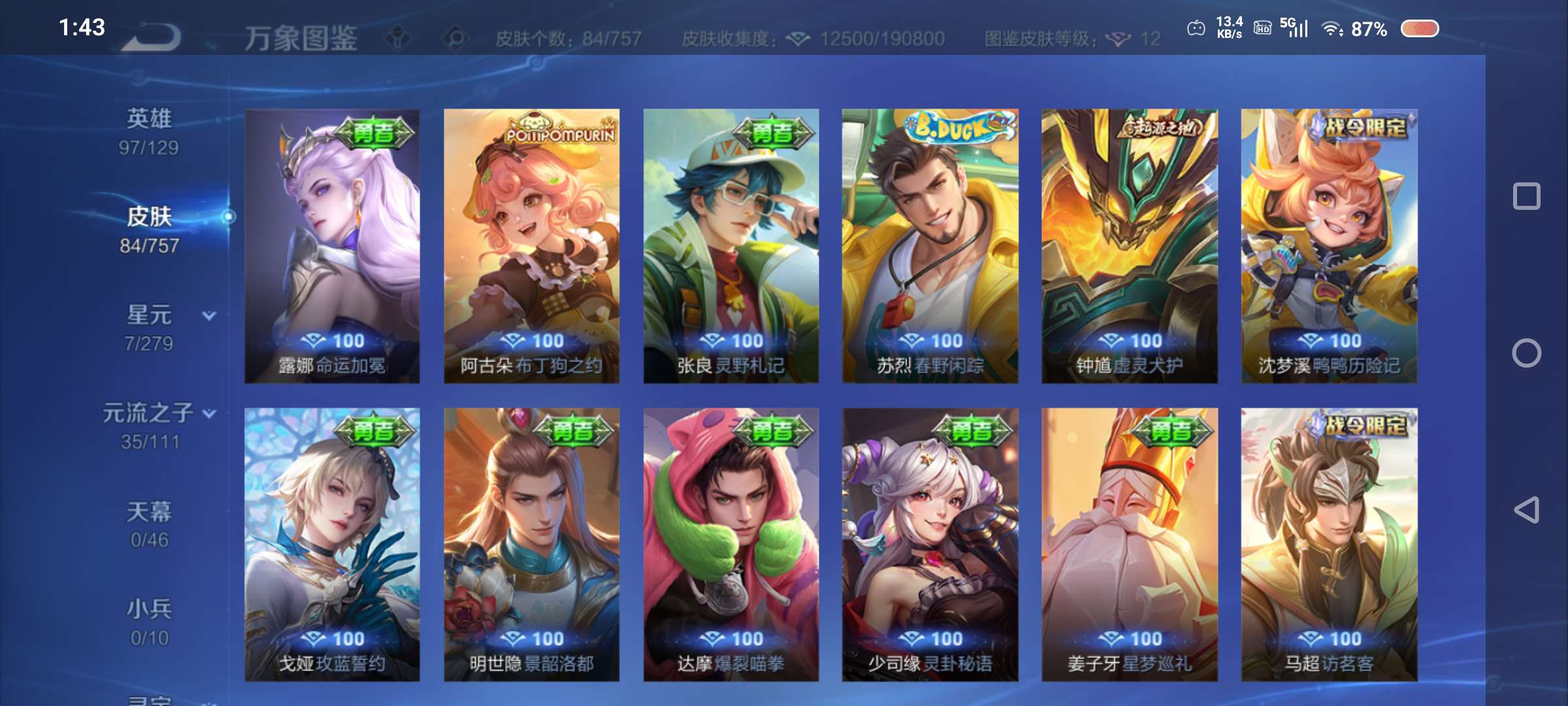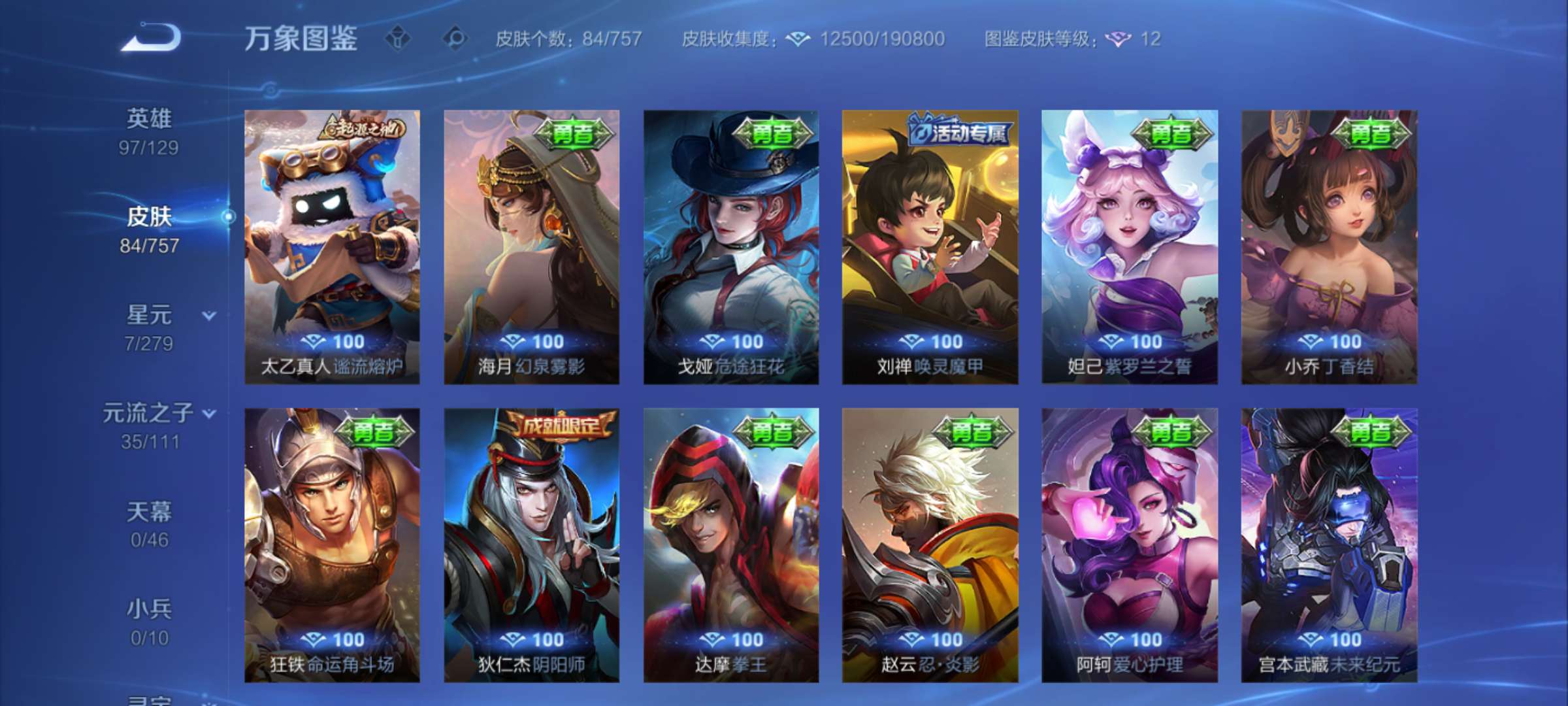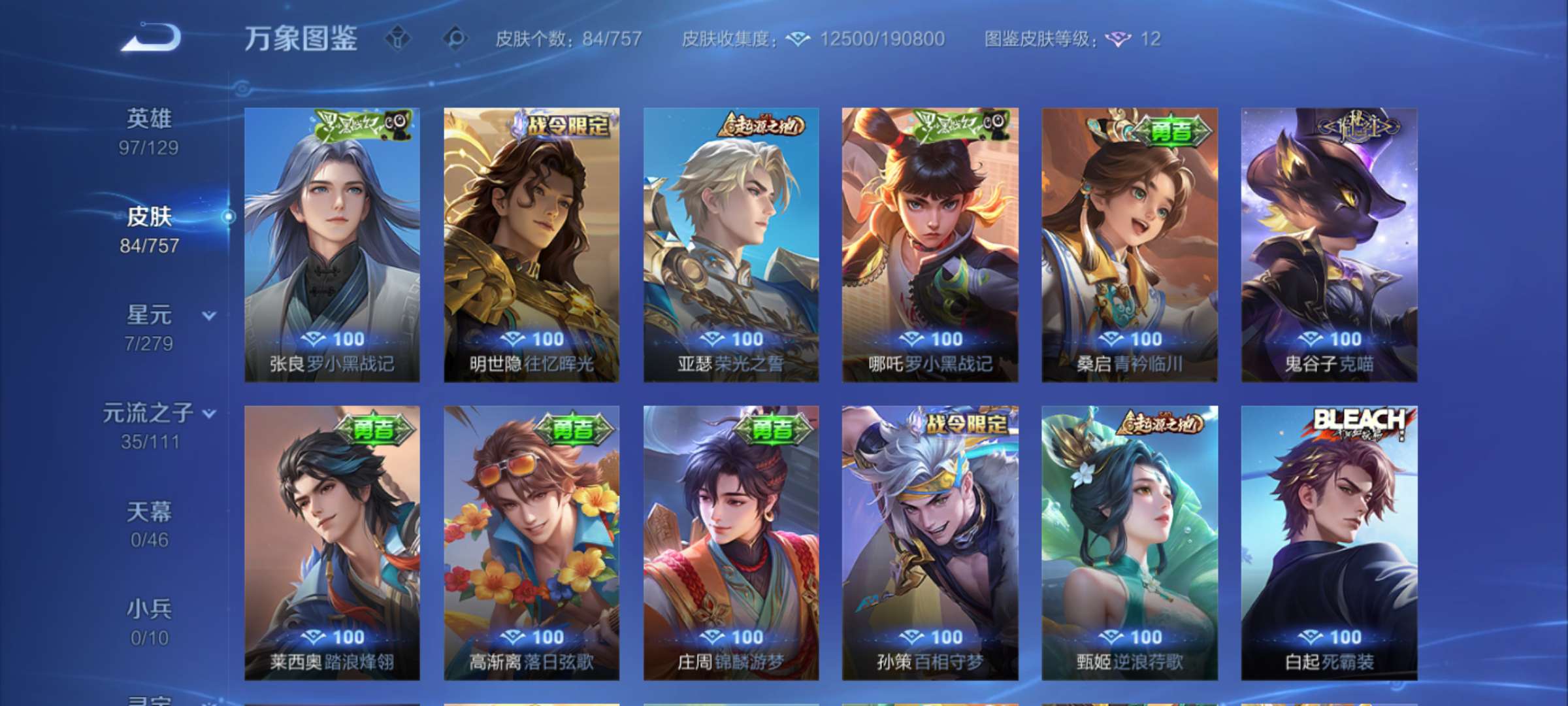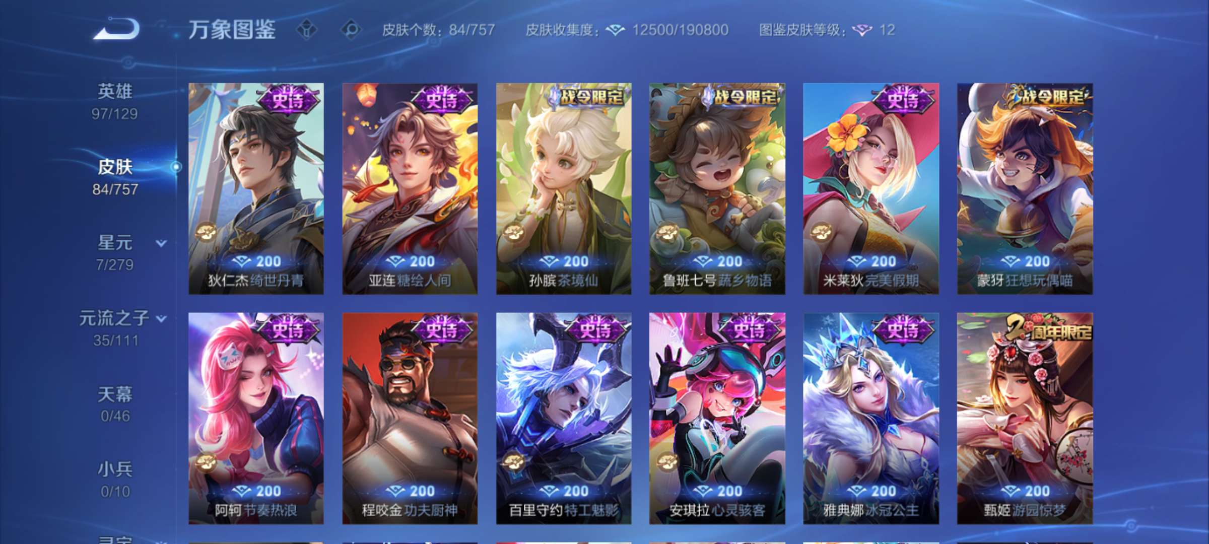 V5 皮肤84 英雄129 永恒钻石 传说6 其他皮肤83
