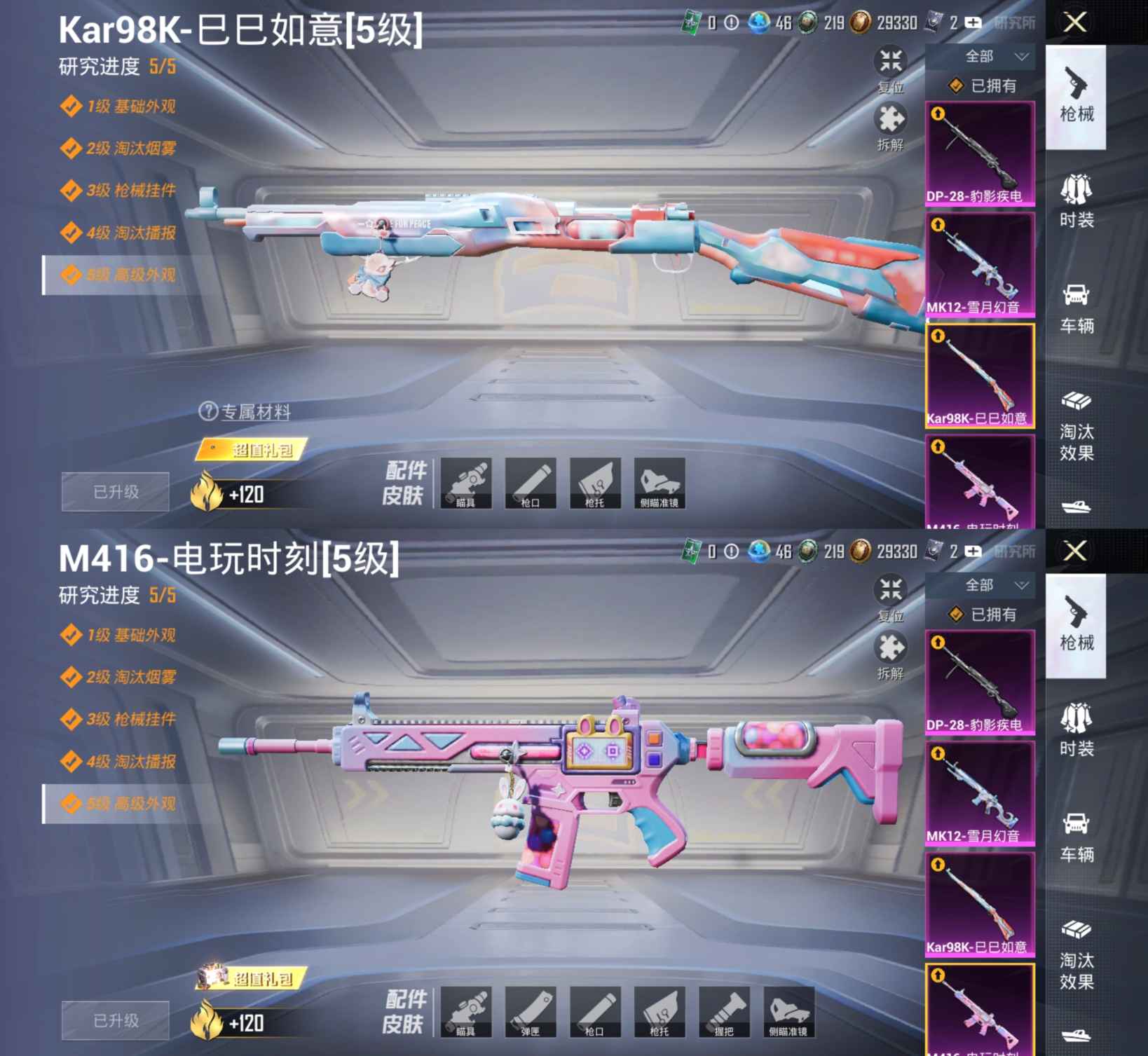 1载具2粉装4特效 -4特效枪21套装39枪皮 8959热力值 1印记