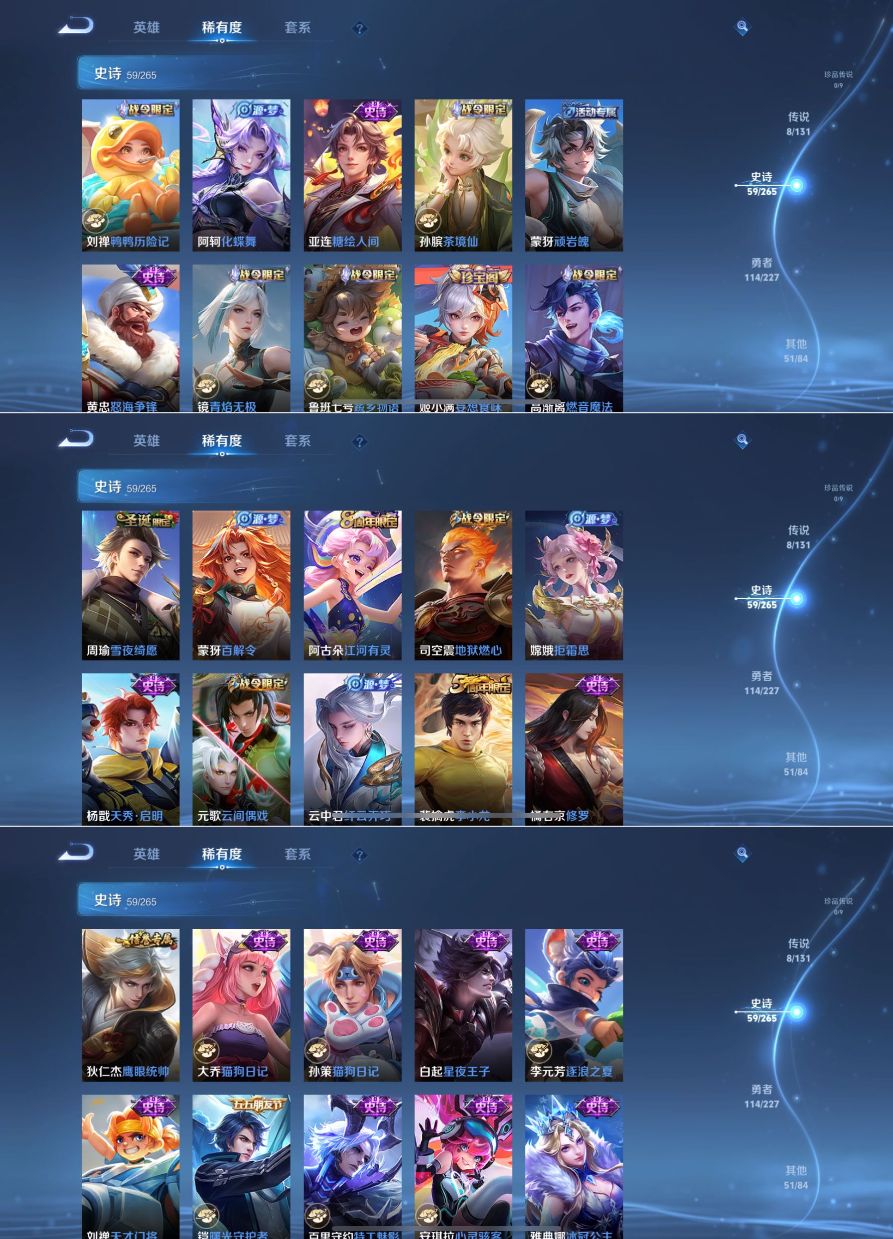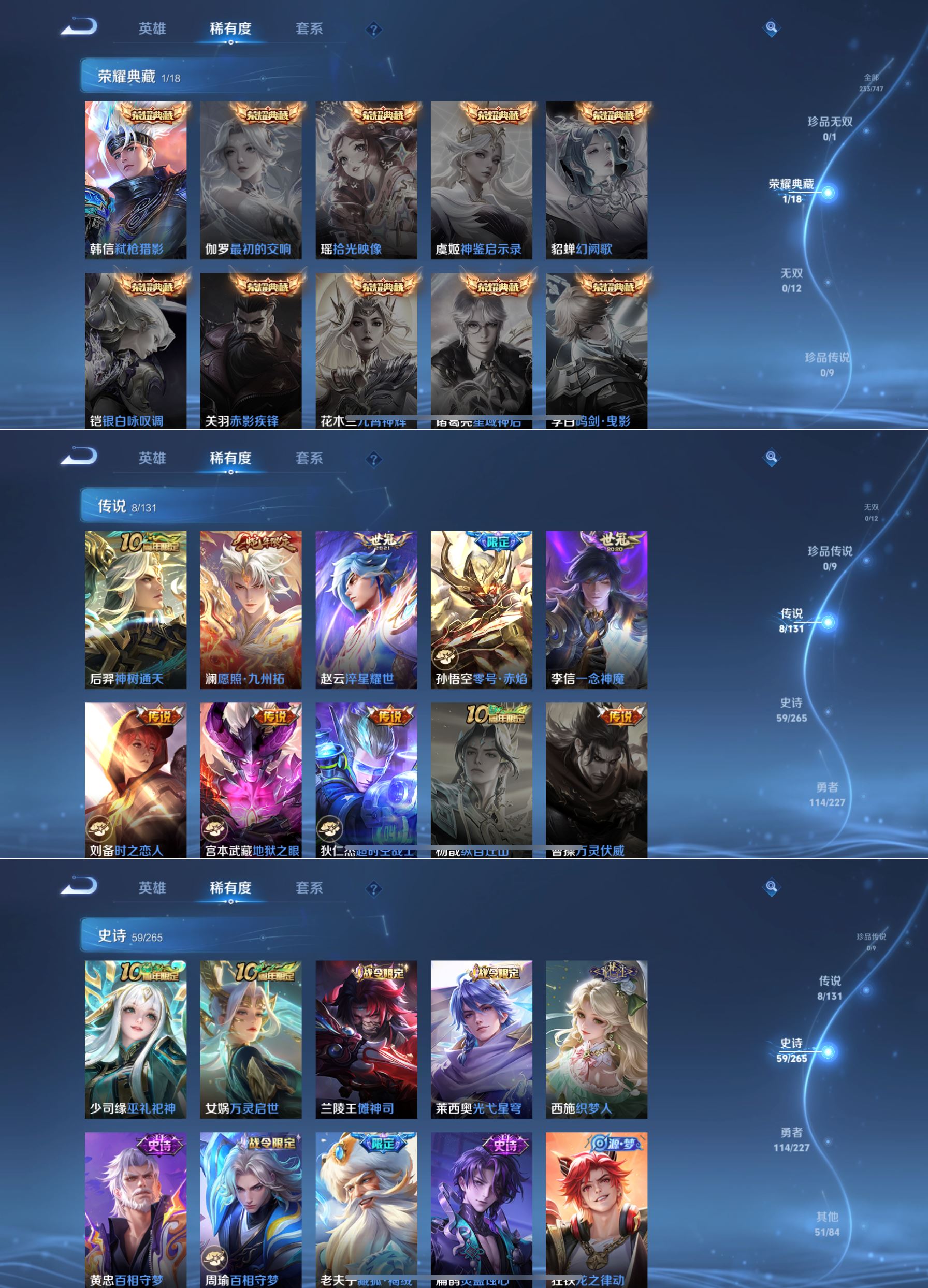非凡王者-127英雄-233皮肤-1典藏-8传说-59史诗