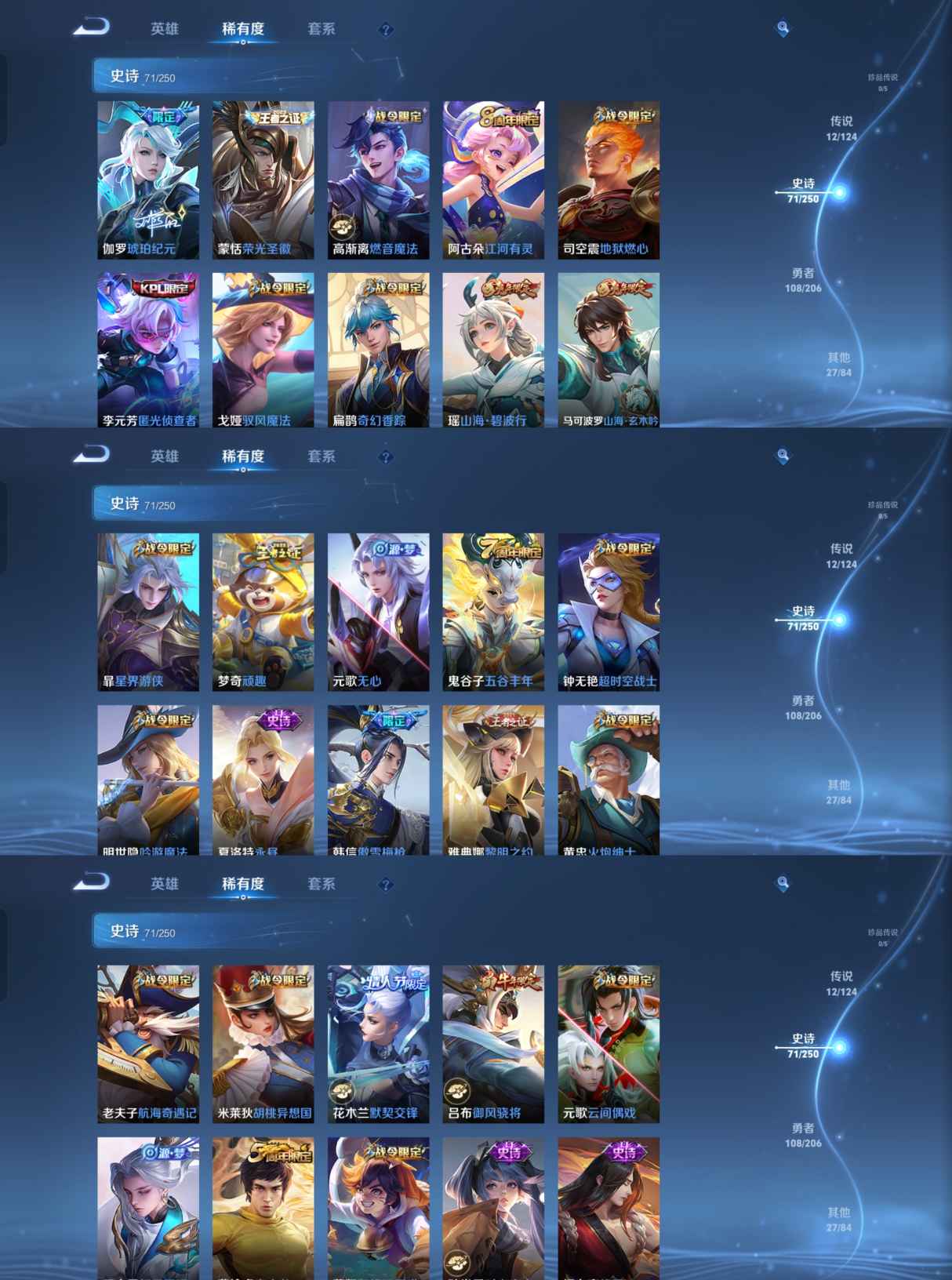 【史诗皮肤】 傲雪梅枪 默契交锋 青龙志 御风骁将 大圣娶亲 地狱燃心 山海·玄木吟 山海·碧波行 琥珀纪元 江河有灵 完美运算 荣光圣徽 漠中幻影 匿光侦查者 超时空战士 奇幻香踪 星界游侠 顽趣 驭风魔法 舞动绿茵 幽灵船长 女仆咖啡