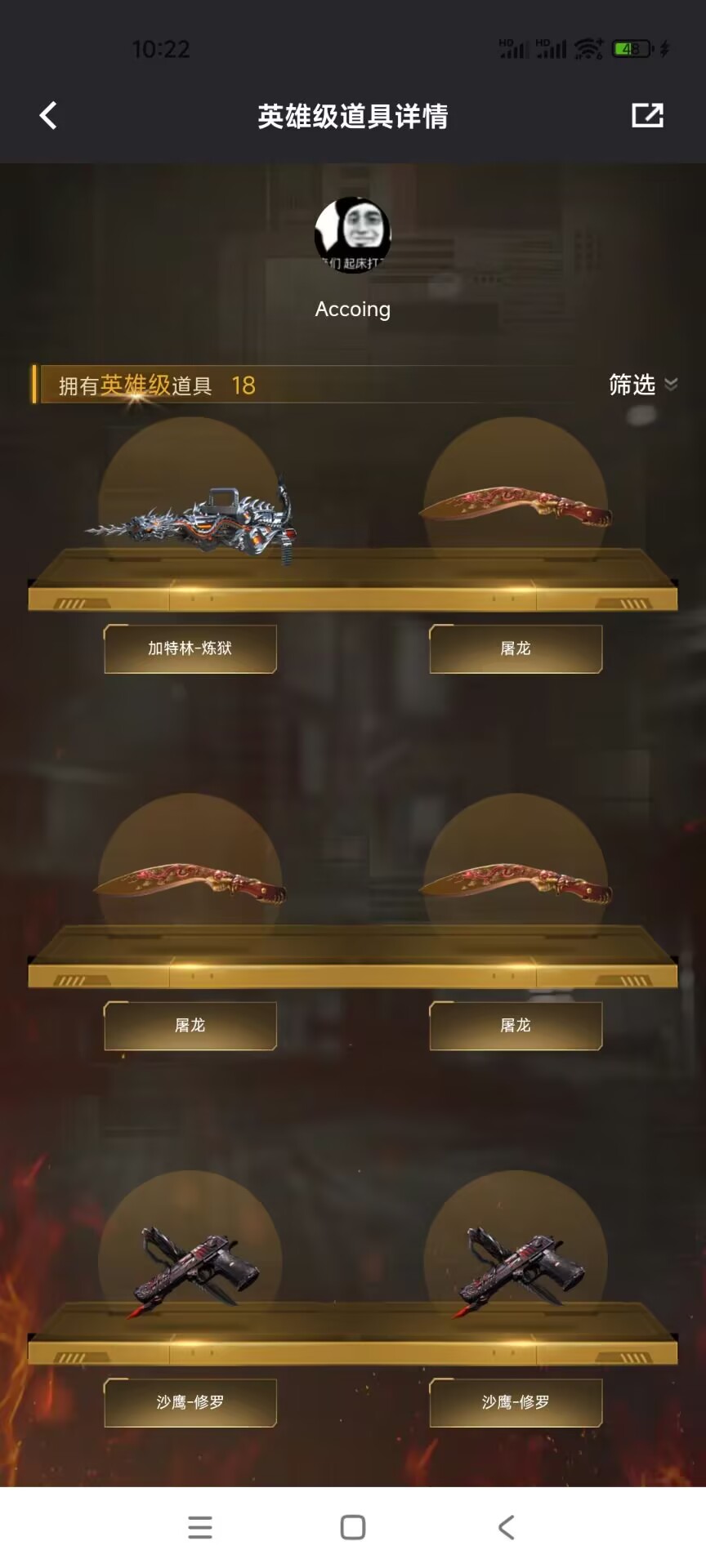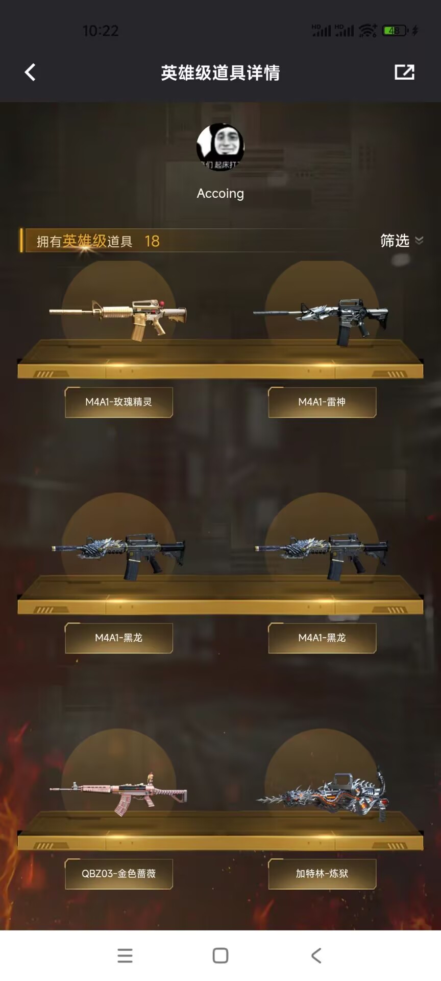 【英雄级武器】加特林-炼狱 QBZ03-金色蔷薇 AK47-黑鲨 AWM-裁决 M4A1-黑龙 AK47-黑鲨 M4A1-雷神 AK47-B-战神 AK47-B-战士 屠龙 屠龙 沙鹰-修罗 沙鹰-修罗 屠龙 AA-12-雷霆 M4A1-黑龙 M4A1-玫瑰精灵 加特林-炼狱