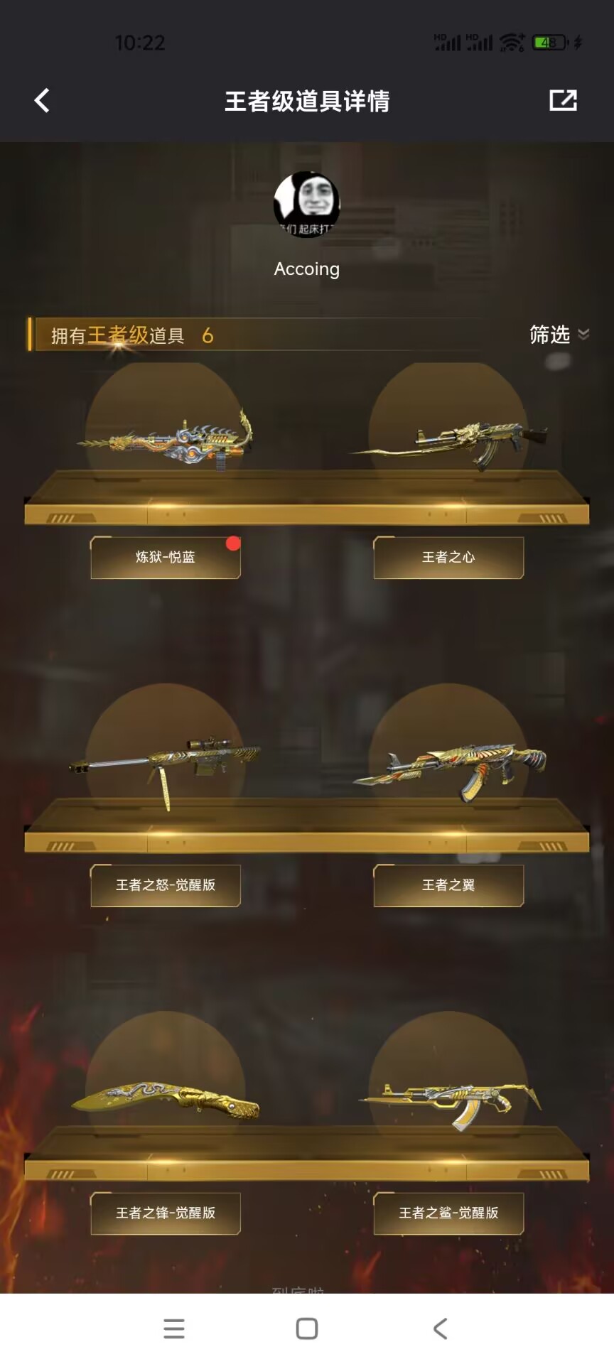 【王者级武器】王者之心 王者之鲨-觉醒版 炼狱-悦蓝 王者之怒-觉醒版 王者之翼 王者之锋-觉醒版