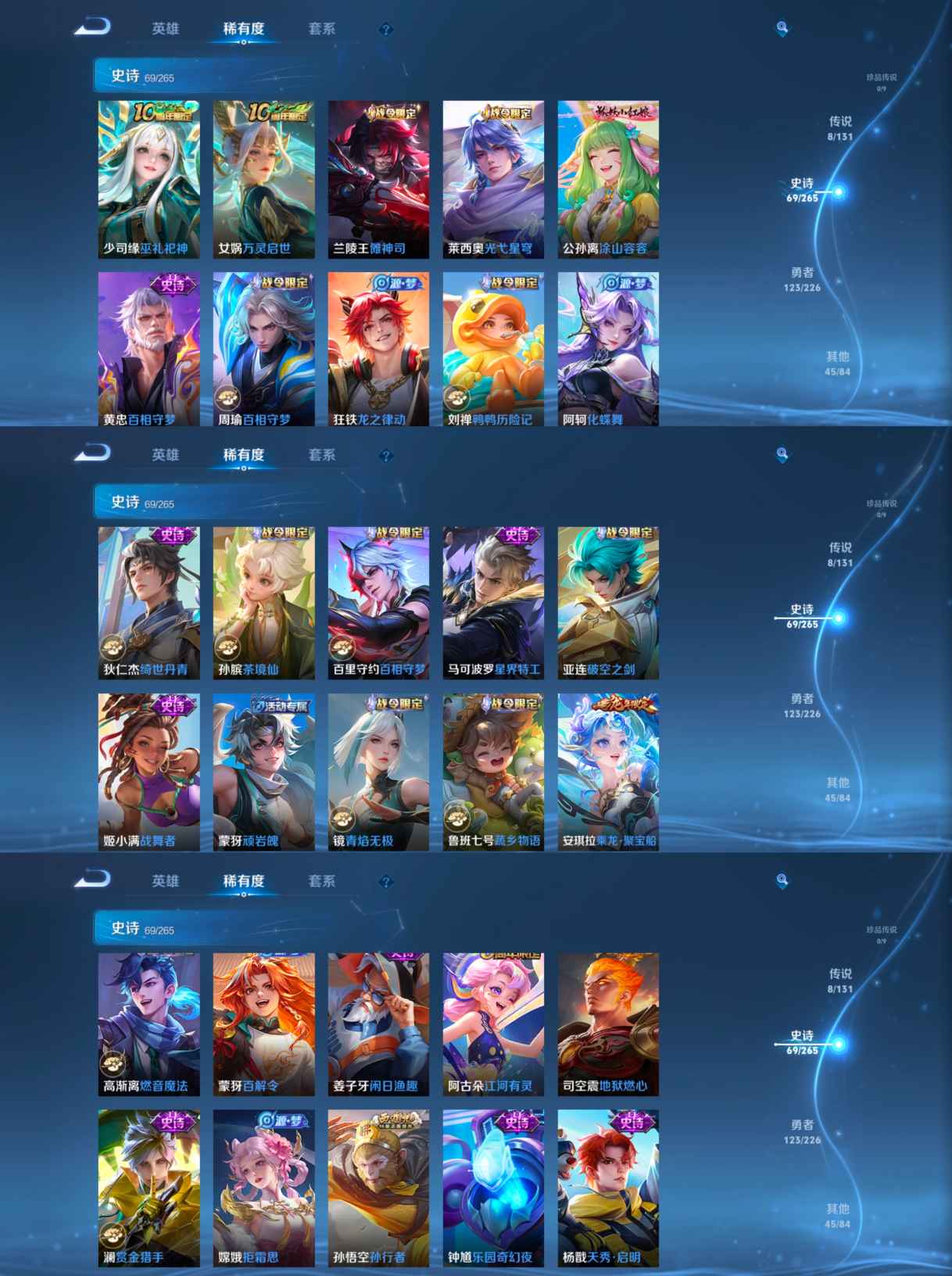 【史诗皮肤】 闲日渔趣 蔬乡物语 蔬乡物语 破空之剑 茶境仙 战舞者 百相守梦 龙之律动 绮世丹青 冰霜恋舞曲 鸭鸭历险记 敬我三分 乘龙·聚宝船 至尊宝 孙行者 地狱燃心 星界特工 青焰无极 江河有灵 乘龙·聚宝船 布丁狗之约 完美运算 谧流熔炉 百相守梦 百相守梦 幽灵船长