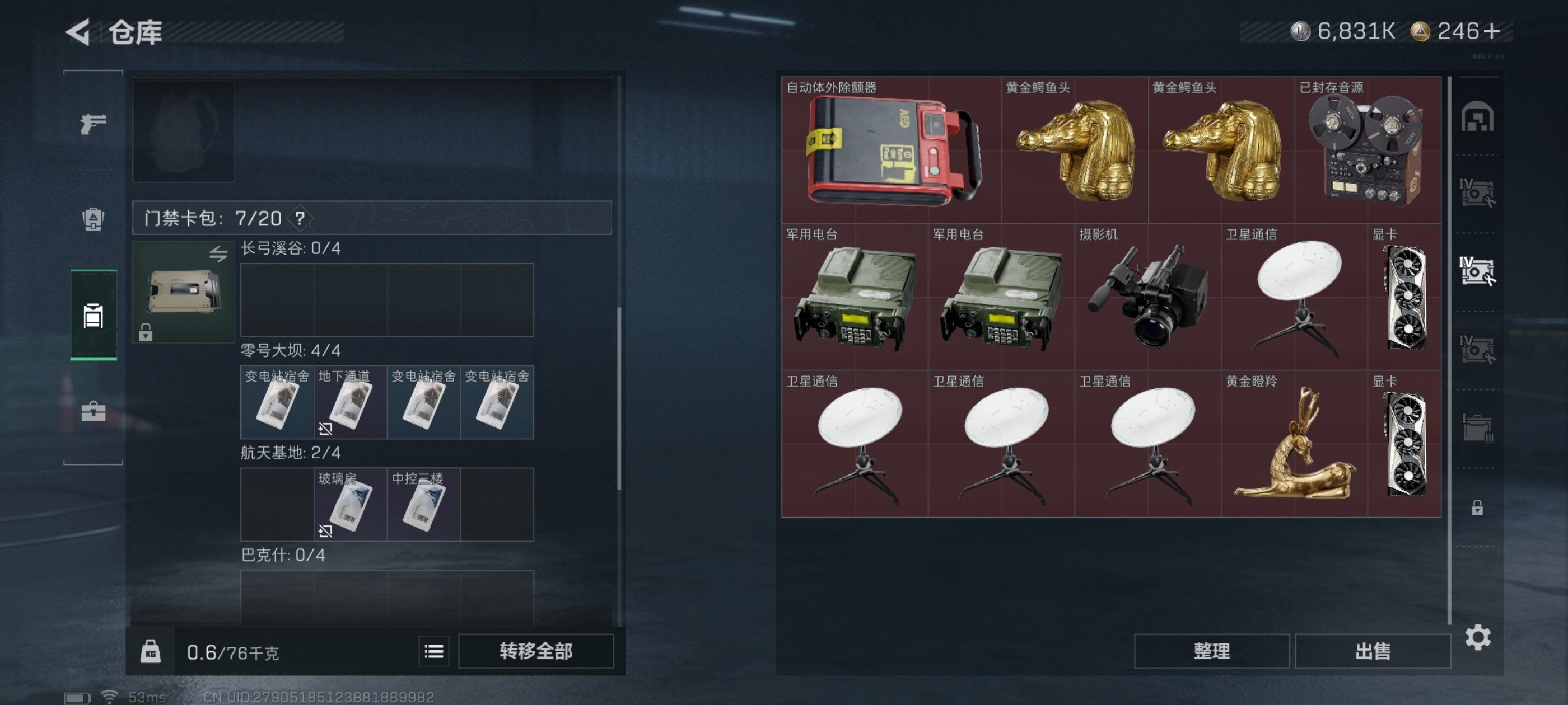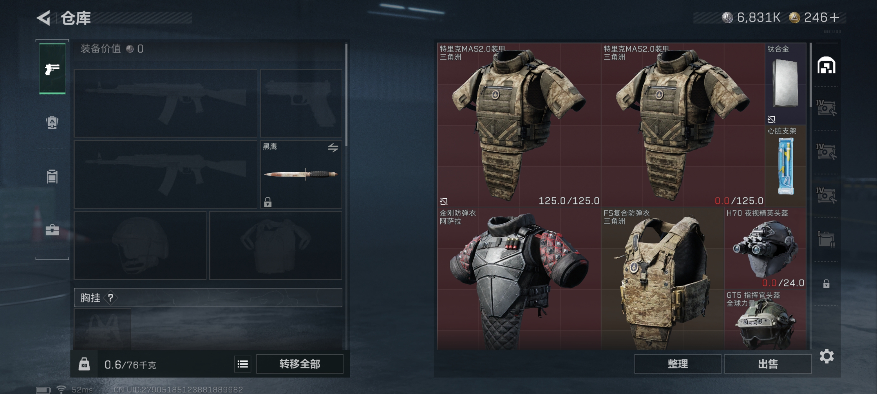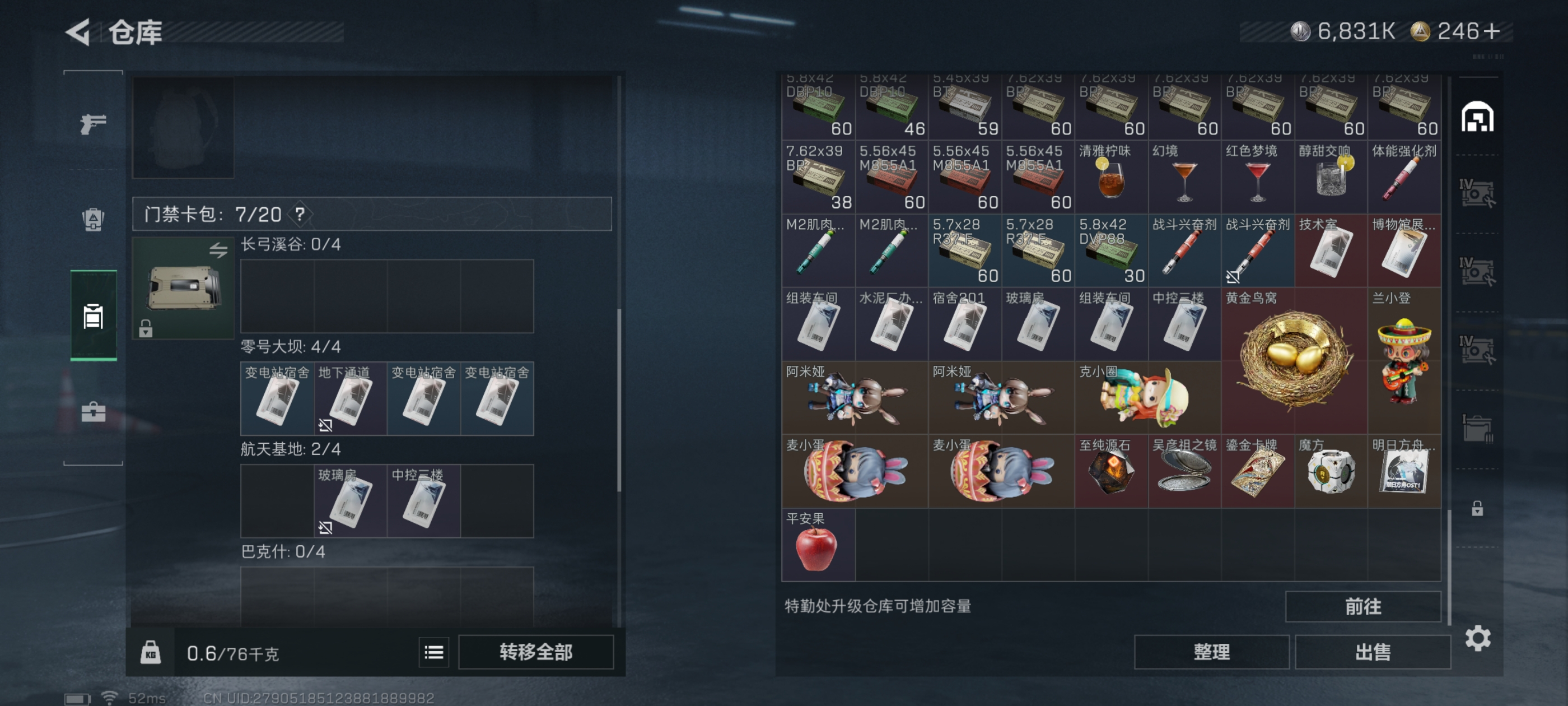 总价值87.5M-哈夫币6831k-烽火地带等级60-烽火地带段位铂