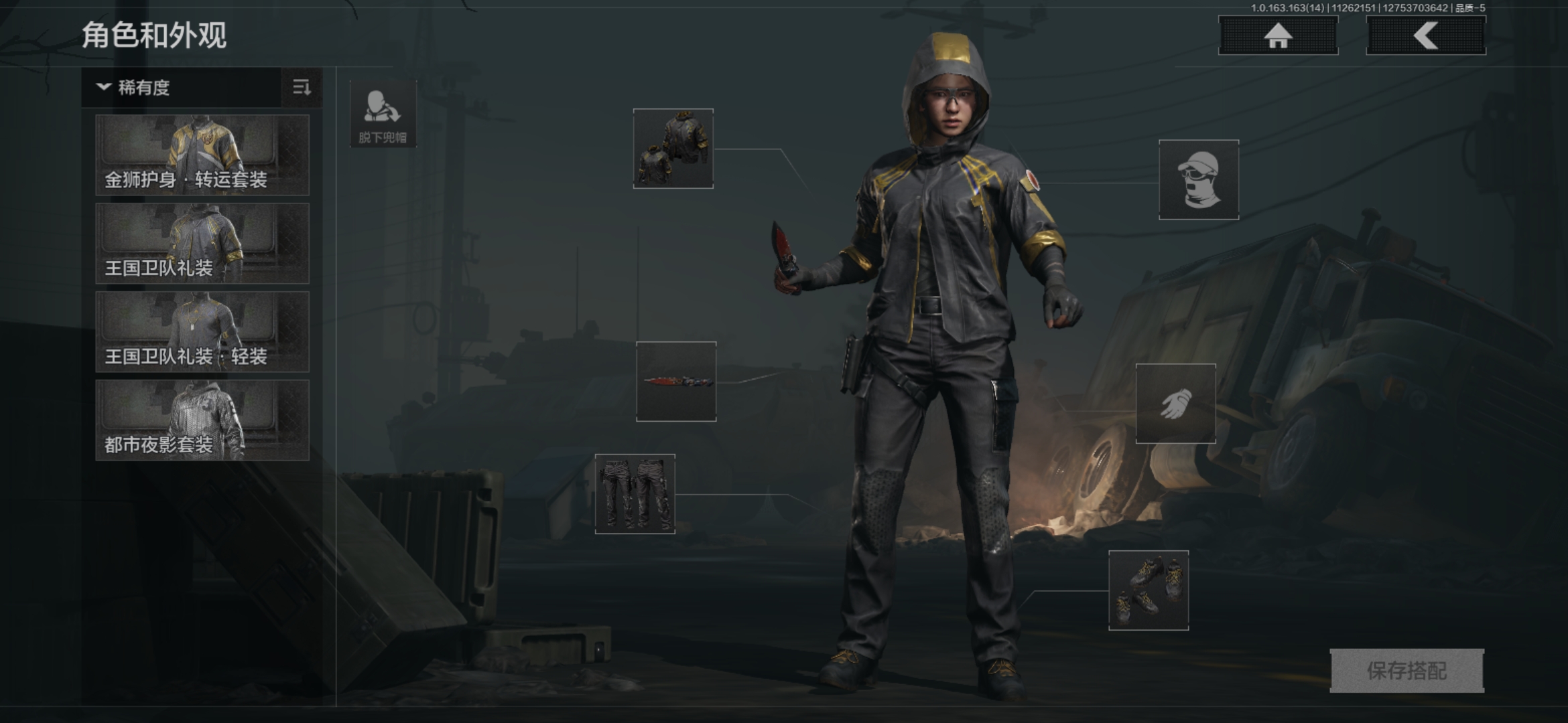 DSTW1640安卓Q-等级30-仓库价值1.6M-科恩币689885 【套装】金狮护身·转运套装 王国卫队礼装 王国卫队礼装:轻装 都市夜影套装 【近战武器】空腔战术 工兵铲