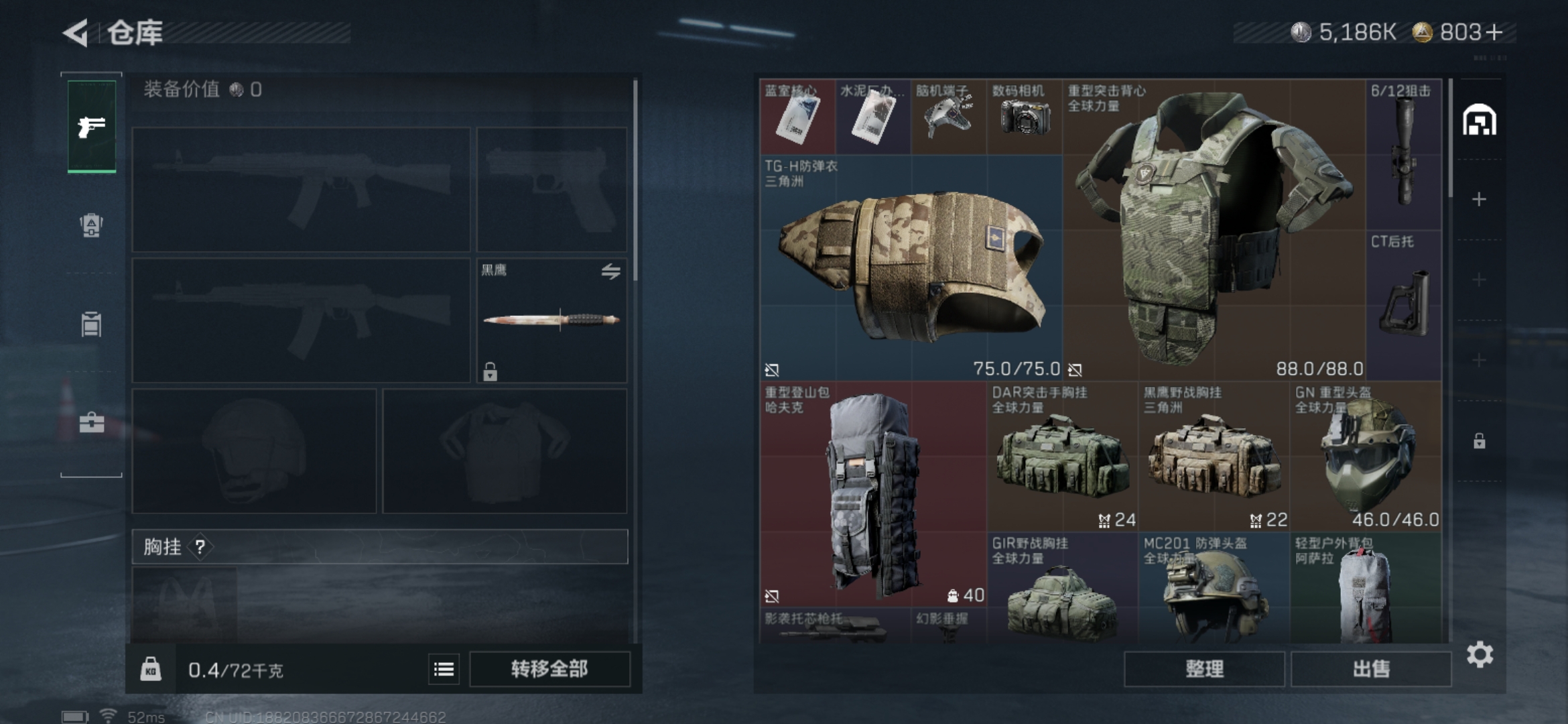 【总资产(M)】22.22M【哈夫币】5186K【行动等级】60