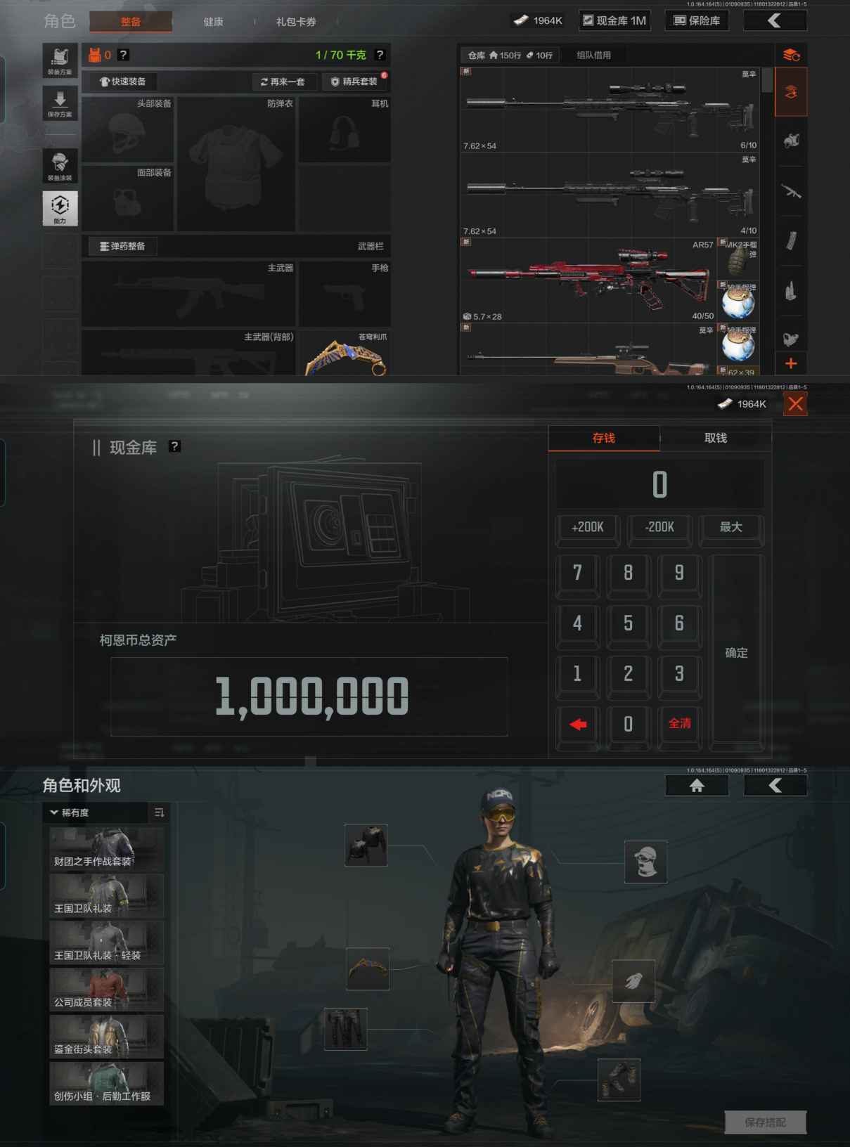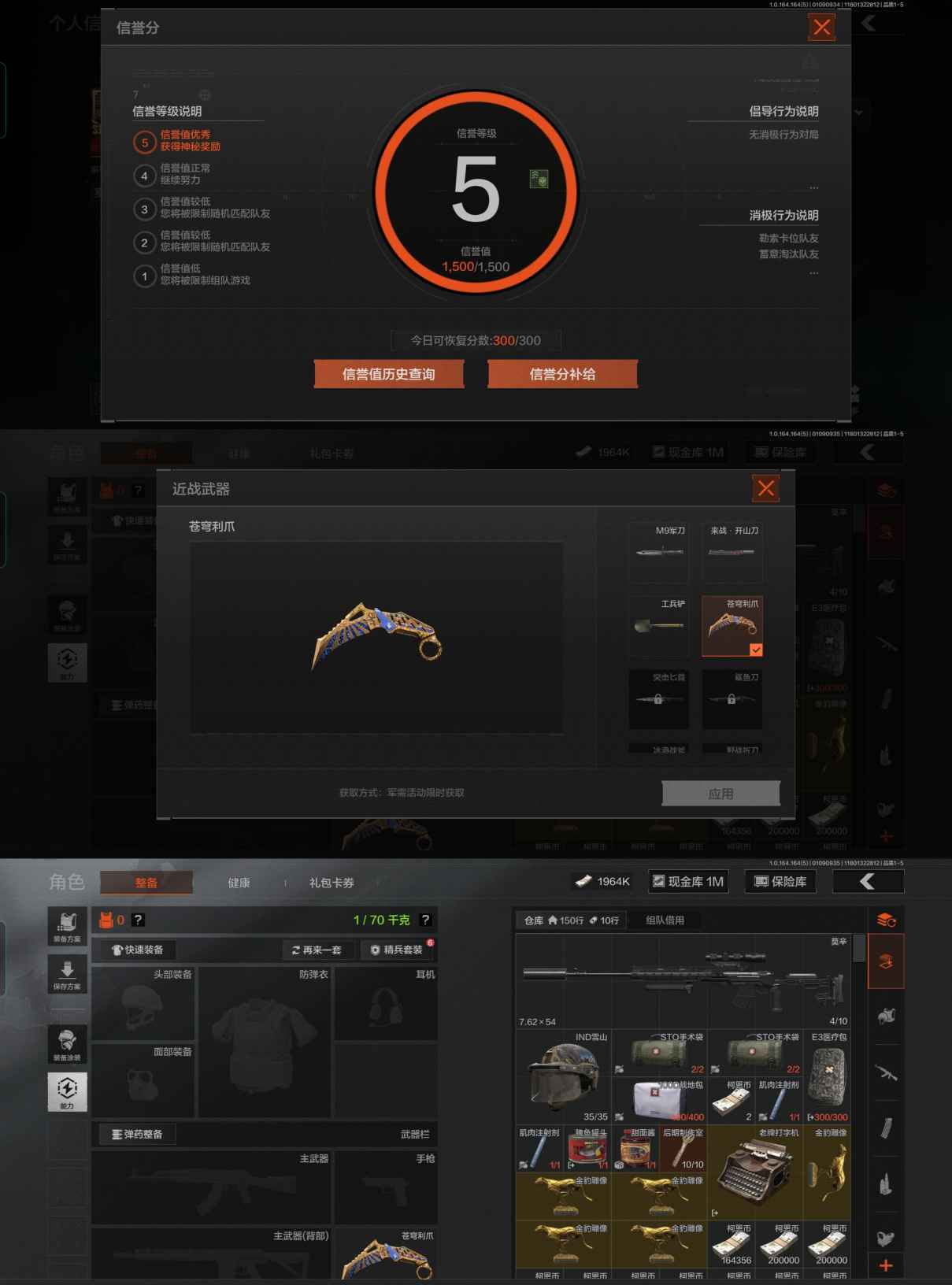 5.1M 仓库价值 苍穹利爪 4金枪 1金投掷物 科恩币1964K