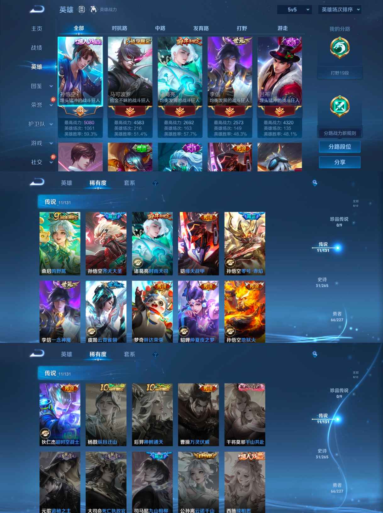 【传说皮肤】 鸣野蒿 齐天大圣 超时空战士 仲夏夜之梦 绛天战甲 一念神魔 胖达荣荣 地狱火 零号·赤焰 云霓雀翎 时雨天司