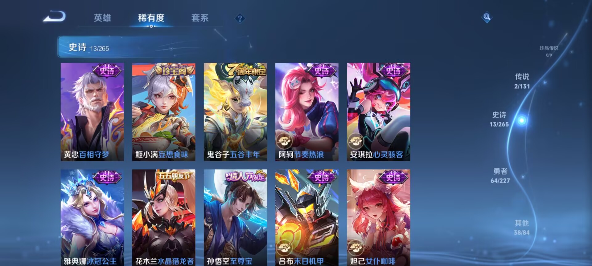至尊星耀III-124英雄-118皮肤-1典藏-2传说-13史诗