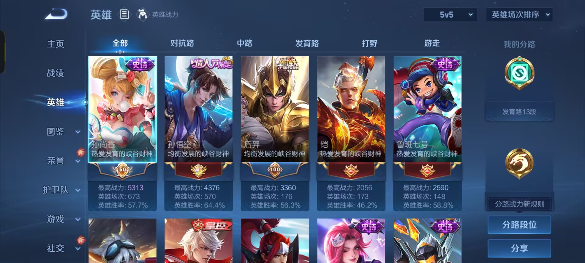 WLWZ884【v5 典藏1 传说2 至尊宝 星传说1幽冥火】安卓Q-至尊星耀III-124英雄-118皮肤-1典藏-2传说-13史诗
