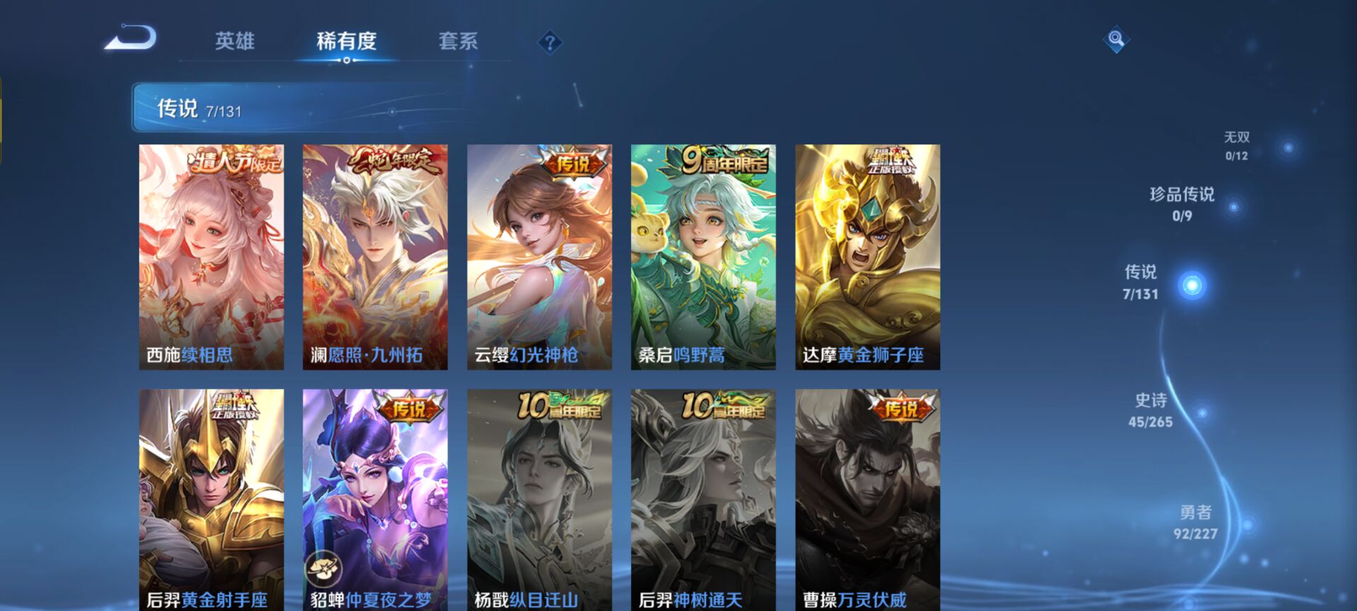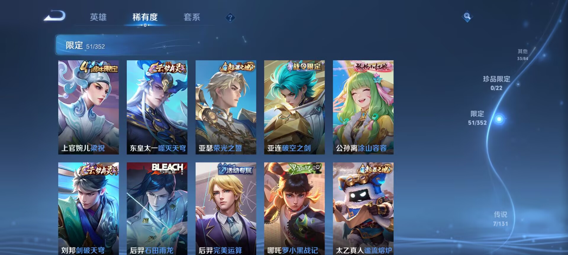 非凡王者-124英雄-177皮肤-7传说-45史诗