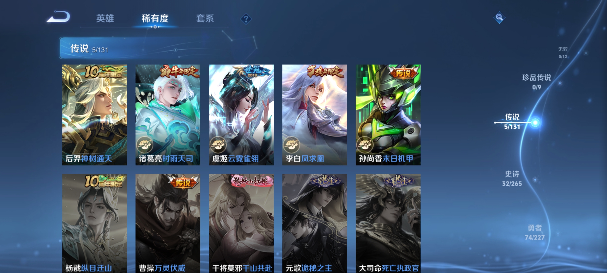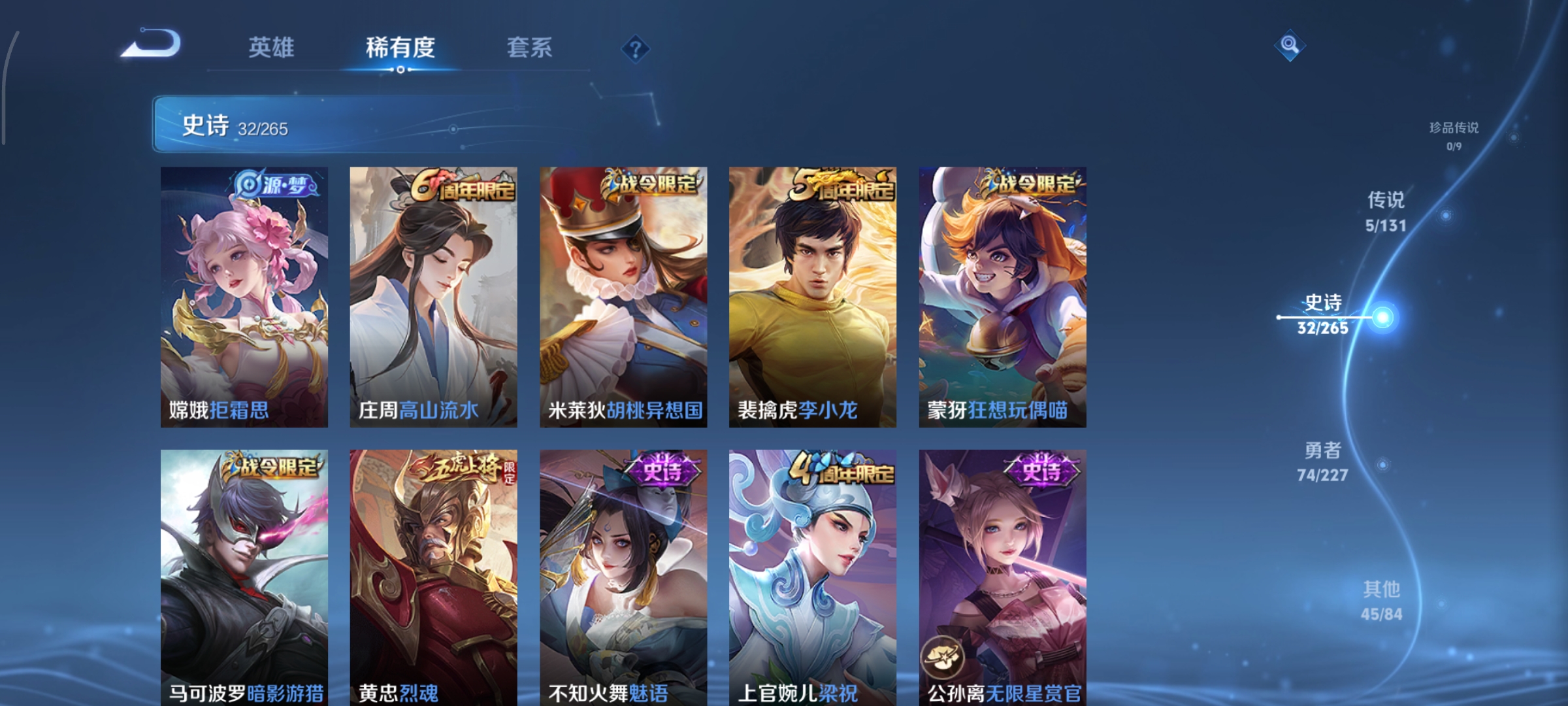 非凡王者-125英雄-156皮肤-5传说-32史诗