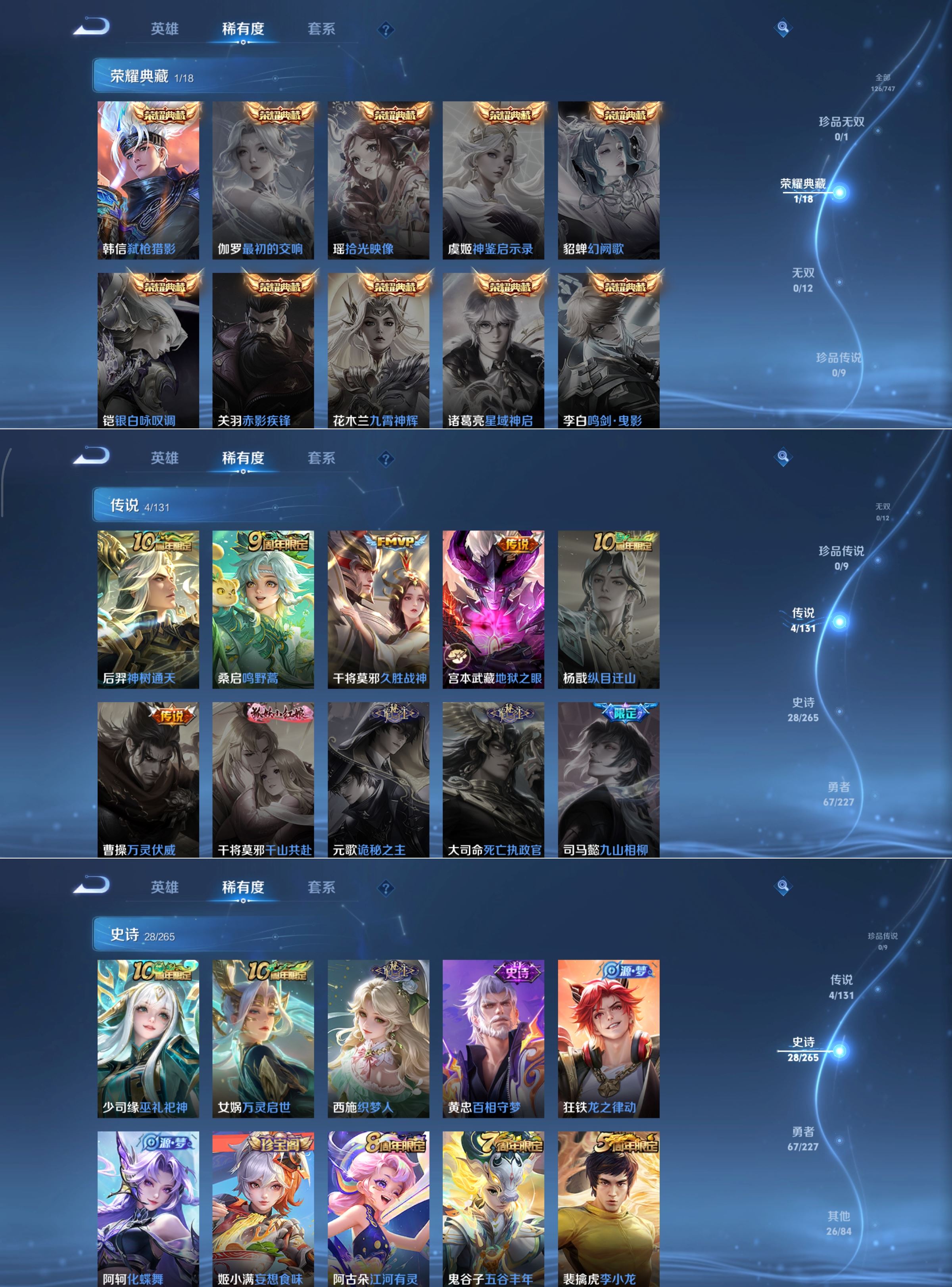 永恒钻石II-125英雄-126皮肤-1典藏-4传说-28史诗