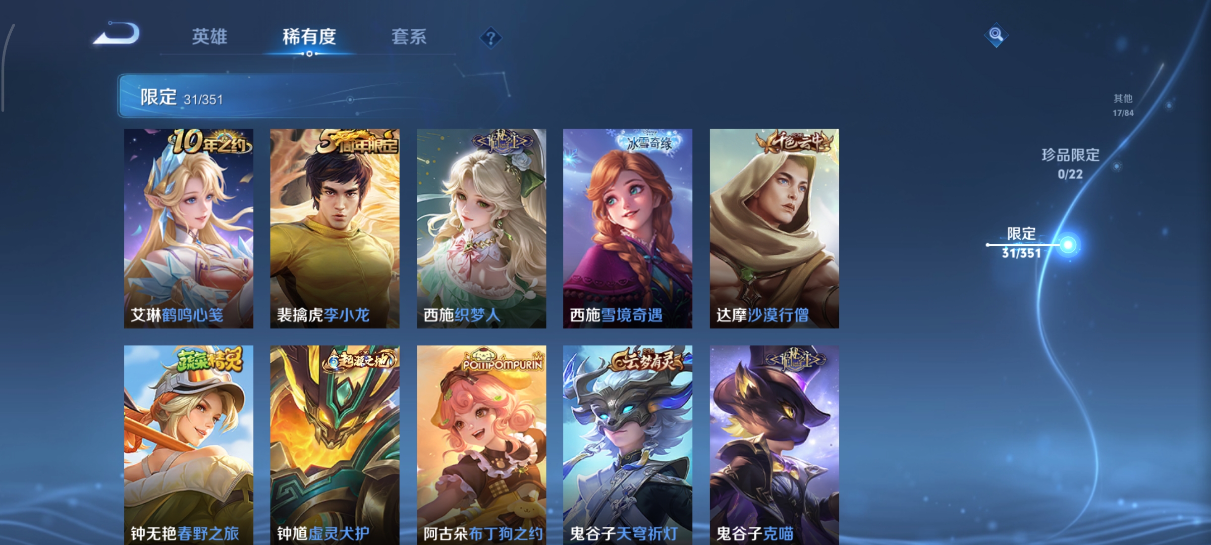 最强王者-122英雄-109皮肤-1典藏-4传说-25史诗