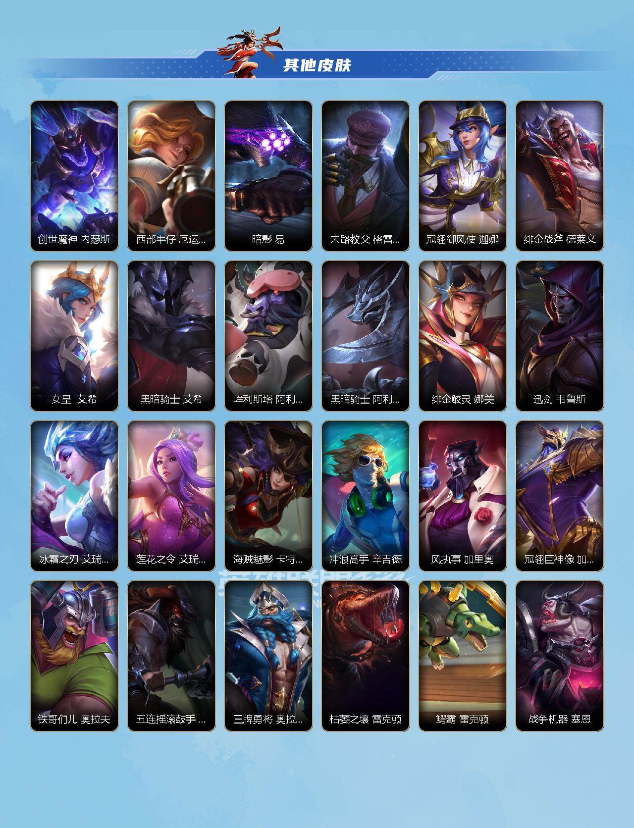 【LSC352】119英雄/106皮肤/流光翡翠/星域游侠 崔斯特/欧米伽小队 幽灵特工 提莫/炼狱魔犬 内瑟斯/源计划:联合 艾希/黎明使者 锐雯/殇之机器人 阿木木/丧尸 努努和威朗普/腥红之月 黛安娜/猎龙勇士 赵信/斗魂无双 赵信/猎梦吞噬者 卡兹克/双城之战:天资 金克丝/圣诞老人 布隆/腥红之月 烬/灭迹行者 烬/神龙尊者 玉境灵龙 卡莎/铁血女忍 阿卡丽/苹果机器人 布里茨/灵魂莲华 亚索/源计划:山 蕾欧娜/大魔王 提莫/小蜜蜂 提莫/炼狱魔女 蔚/永恒之森 霞/晨星之翎 洛/源