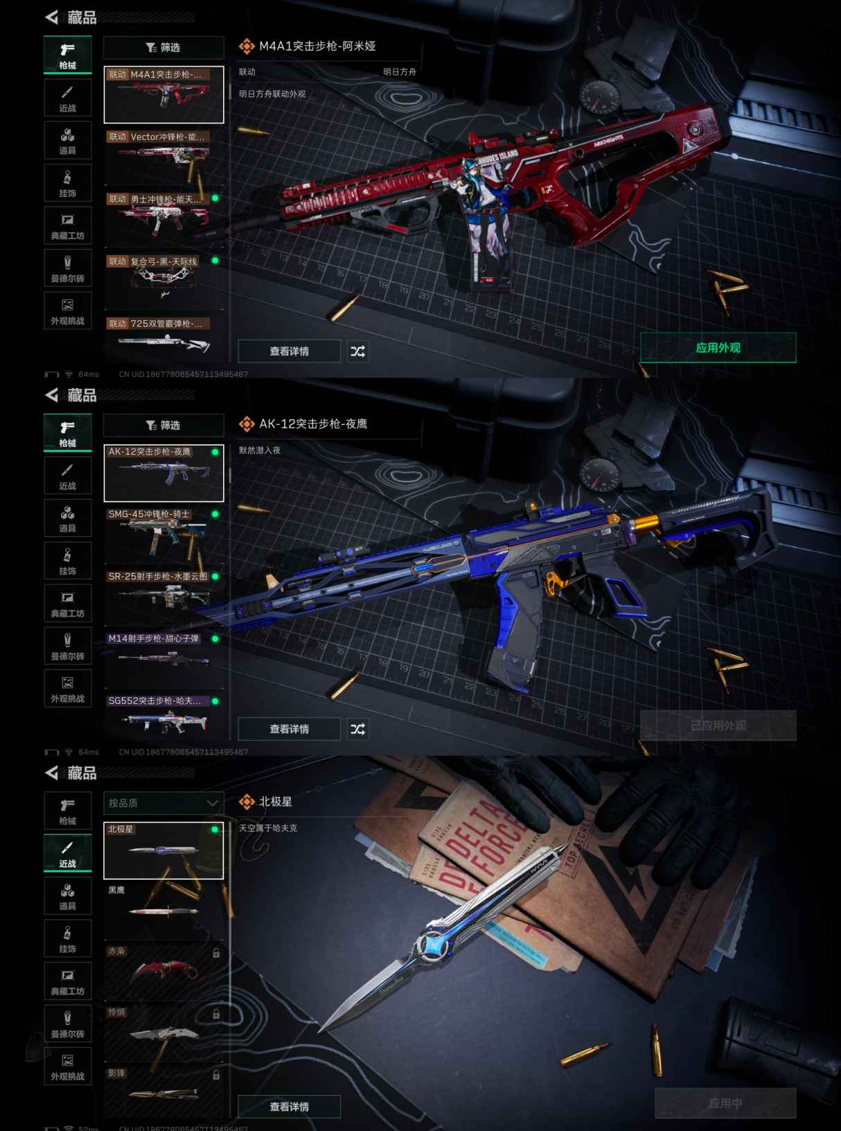 MSJ3110【6干员 满级号 北极星】【总资产(M)】9.09【哈夫币】136k【行动等级】60【烽火地带段位】钻石【干员皮肤】 露娜-金牌射手 露娜-黑·天际线 红狼-电锯惊魂 蜂医-送葬人·无题密令 深蓝-不破誓约 无名-夜鹰 【近战武器】 黑鹰 北极星 【枪皮】G3战斗步枪-凶兽 AUG突击步枪-猛兽 AUG突击步枪-猛兽 M4A1突击步枪-粉色涂装 M4A1突击步枪-高雅黑 M4A1突击步枪-海色 M4A1突击步枪-繁盛 M4A1突击步枪-阿米娅 M4A1突击步枪-蚀金玫瑰 AKM突击