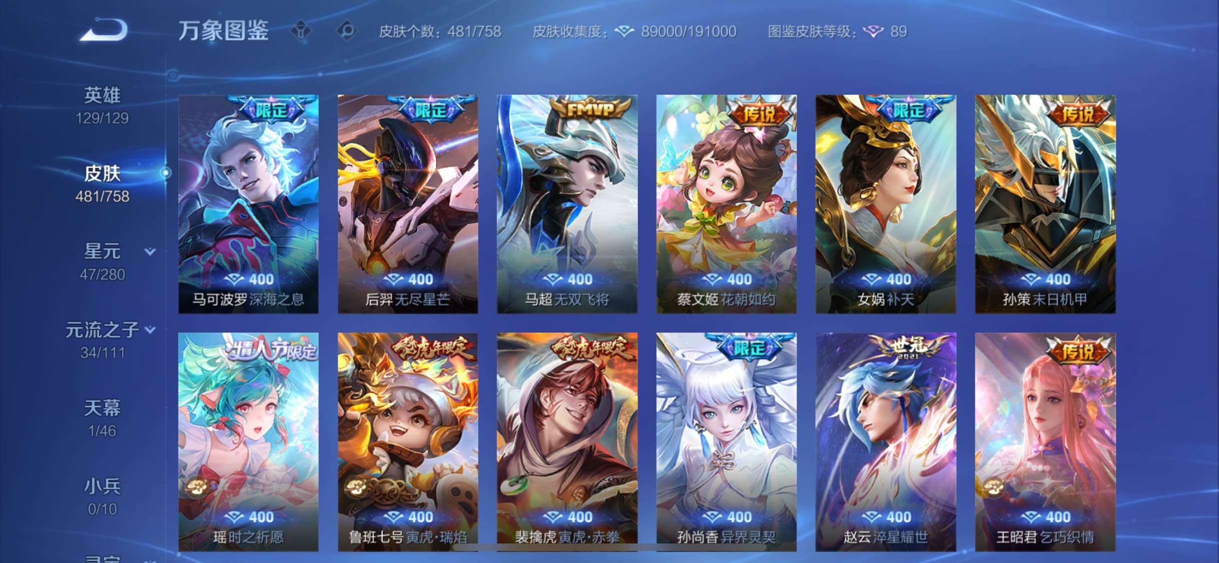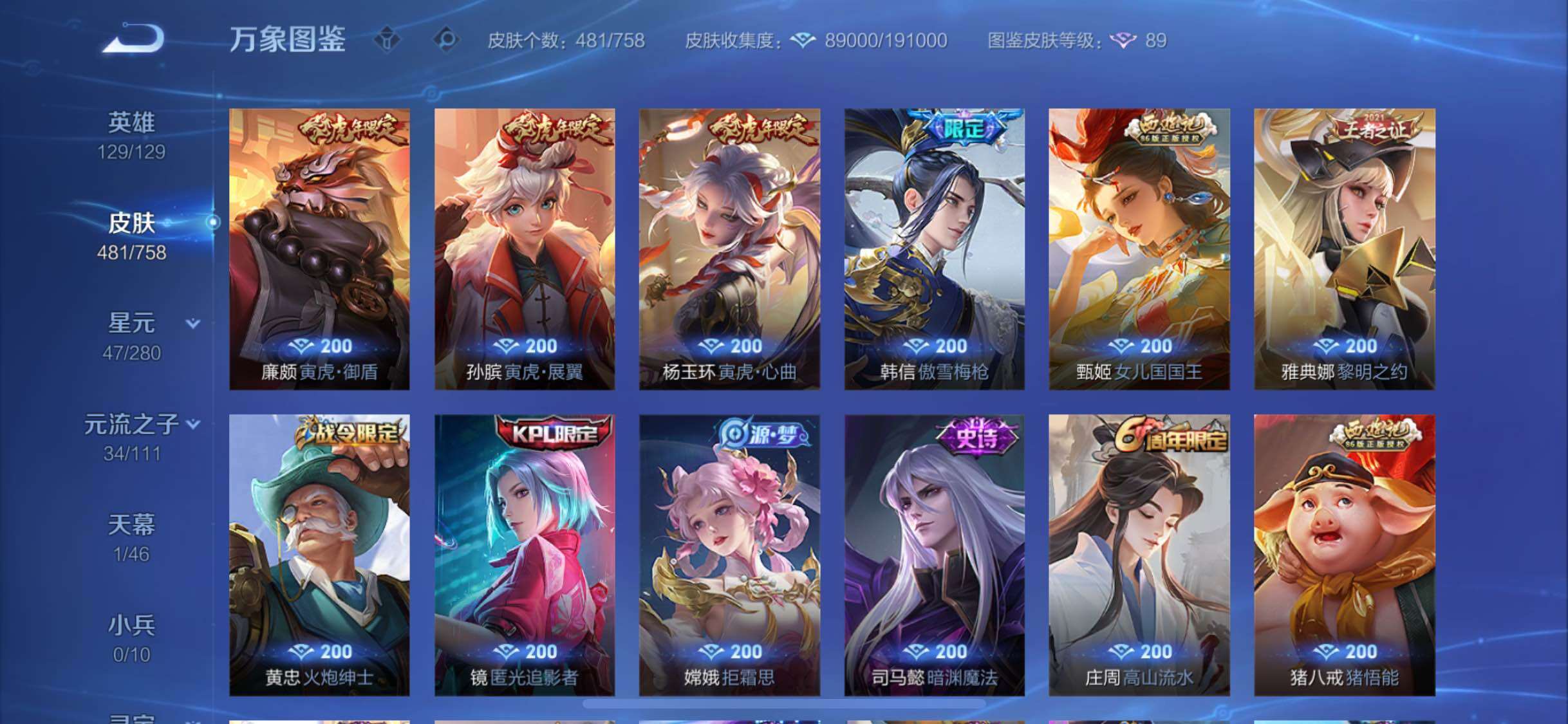【高性价比v10·6典藏·青丘九尾·器灵落星盏·金色仲夏夜·猪年全限定·虎年全限定·五虎上将全限定·兔年全限定·梅西·全皮娜可露露·全皮橘右京·可二次】YXw11690-苹果Q-129英雄-481皮肤-15王者印记-300铭文-贵族积分22w【贵族10】【6典藏·1无双·1珍品·2星传说·60传说·1天幕·9按键·240个性戳戳·230幸运值】【因赛季更新游戏段付以上