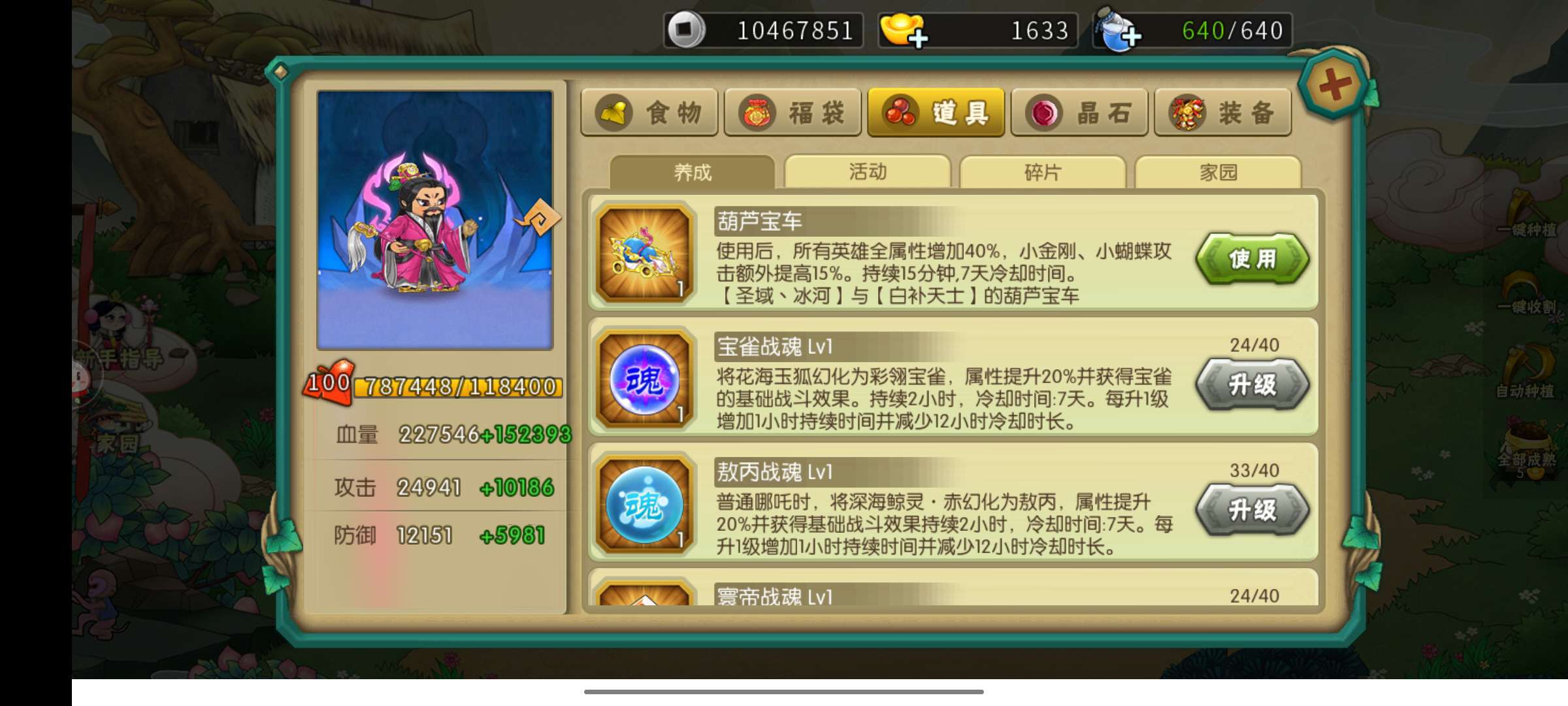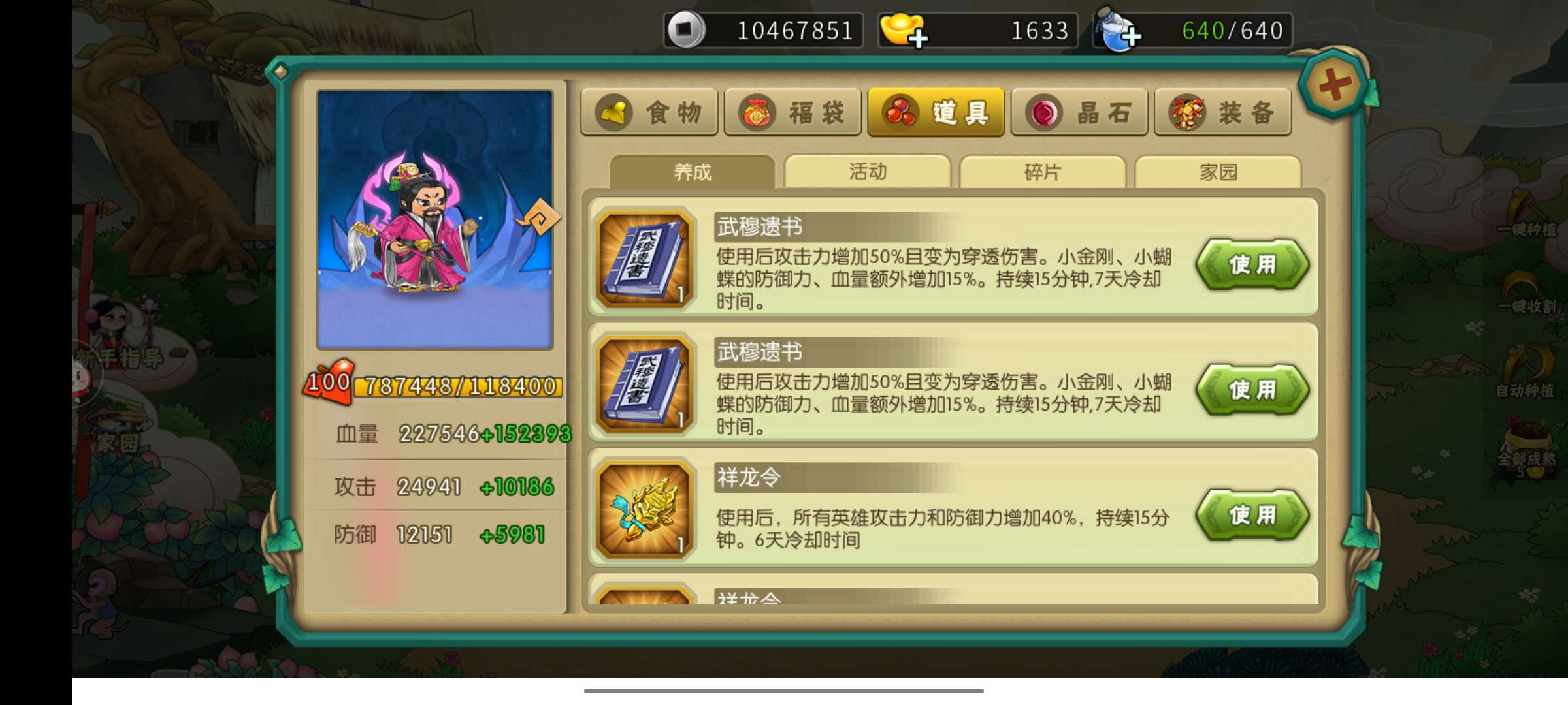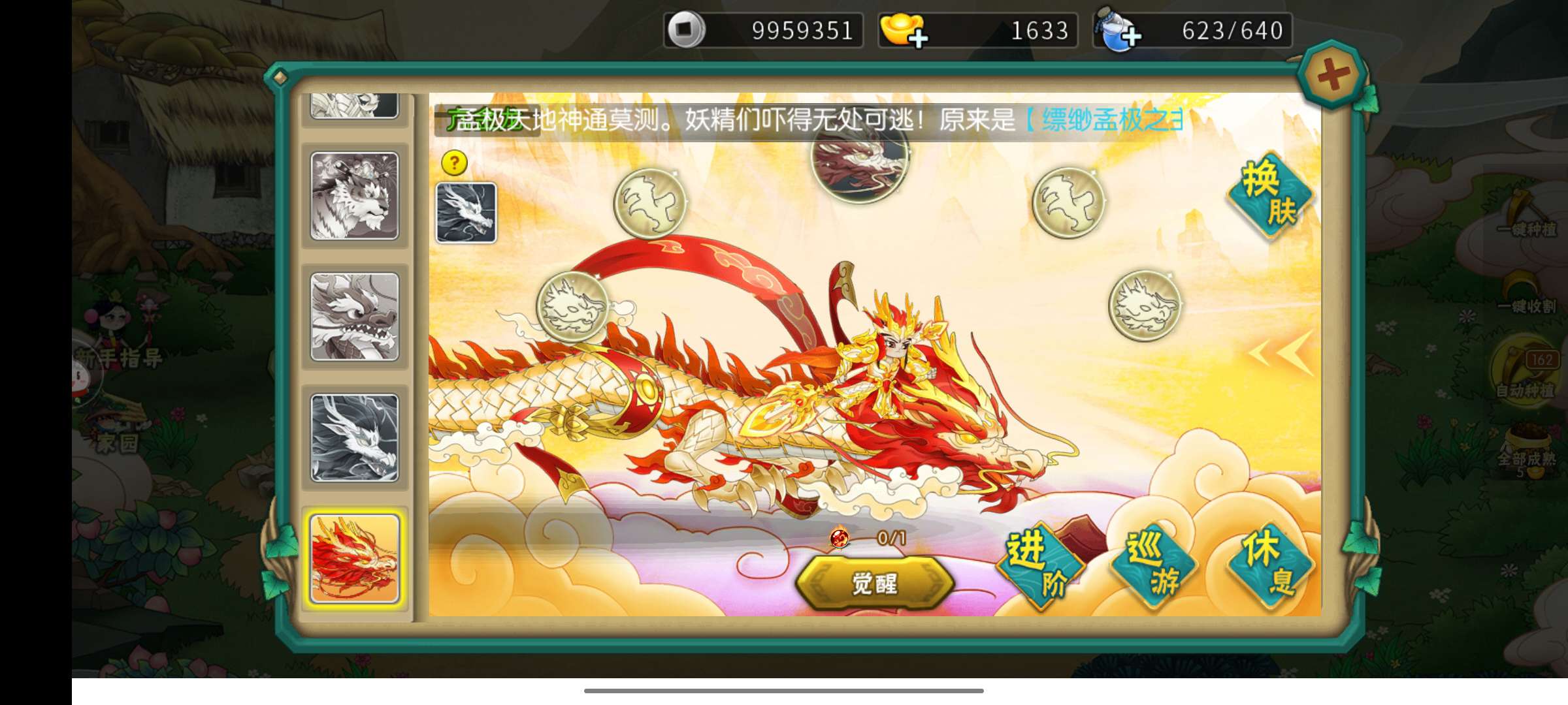 二阶象二阶梦极7神兽还有两个至尊农场一个普通农场两个穿透道具还有很多增幅道具