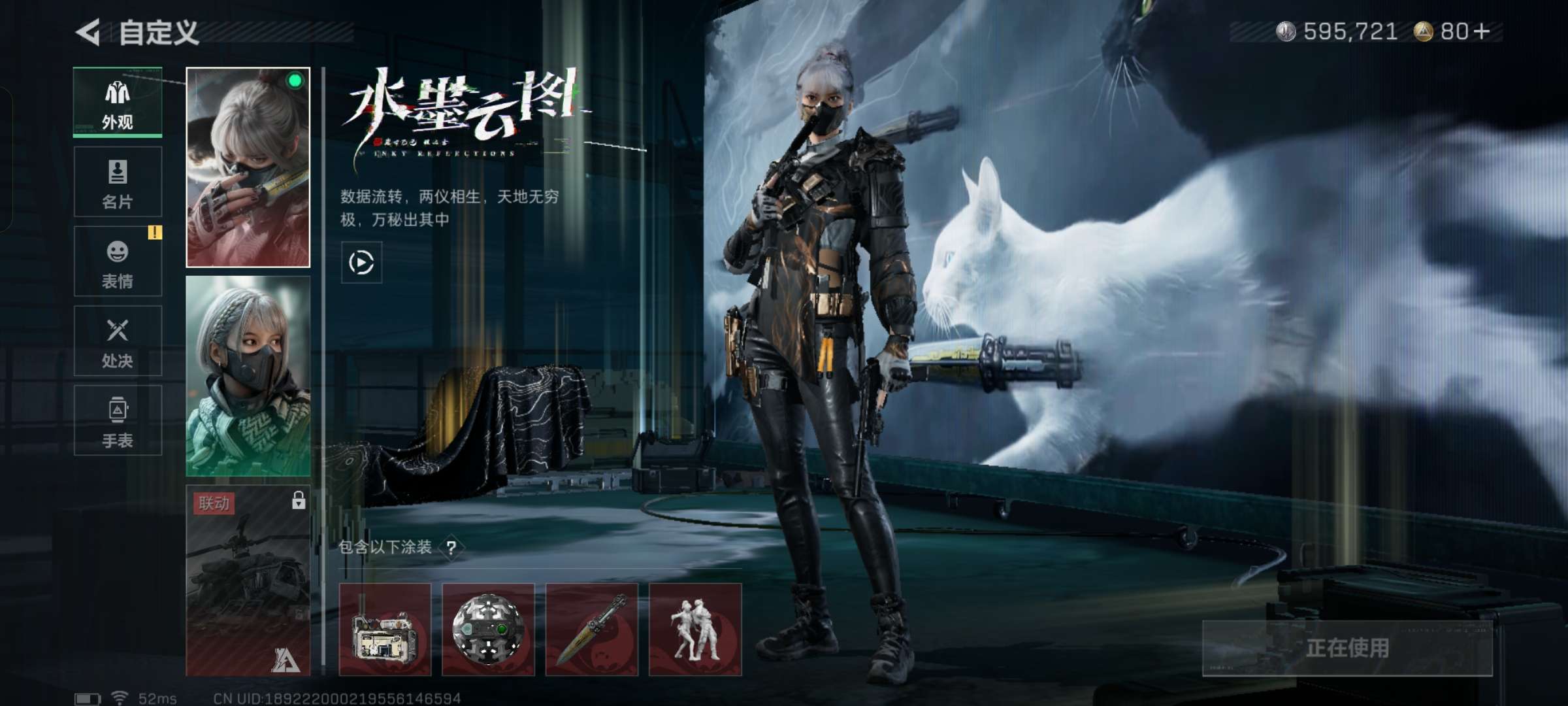 DSX1181【水墨云图】三端互通-总价值69.8M-哈夫币595k-烽火地带等级51-烽火地带【干员皮肤】骇爪-水墨云图【近战武器】黑鹰【枪皮】M7战斗步枪-天际线 M4A1突击步枪-高雅黑 QBZ95-1突击步枪-海浪 QBZ95-1突击步枪-2026 K416突击步枪-几何迷彩 M7战斗步枪-黑巧甜心 SG552突击步枪-浅蓝涂装 SCAR-H战斗步枪-启航 SCAR-H战斗步枪-水墨云图 PTR-32突击步枪-黄蜂 MP5冲锋枪-黄蜂 野牛冲锋枪-高雅黑 SMG-45冲锋枪-哈夫克卫队