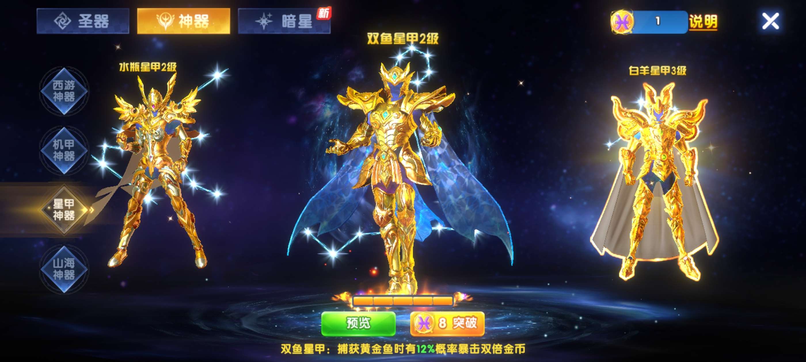 v20雅典娜惊叹,必杀技,觉醒朱雀,7级炉子绝版星甲,1724加成2兆多纯救救济翻倍领完6-8兆救济