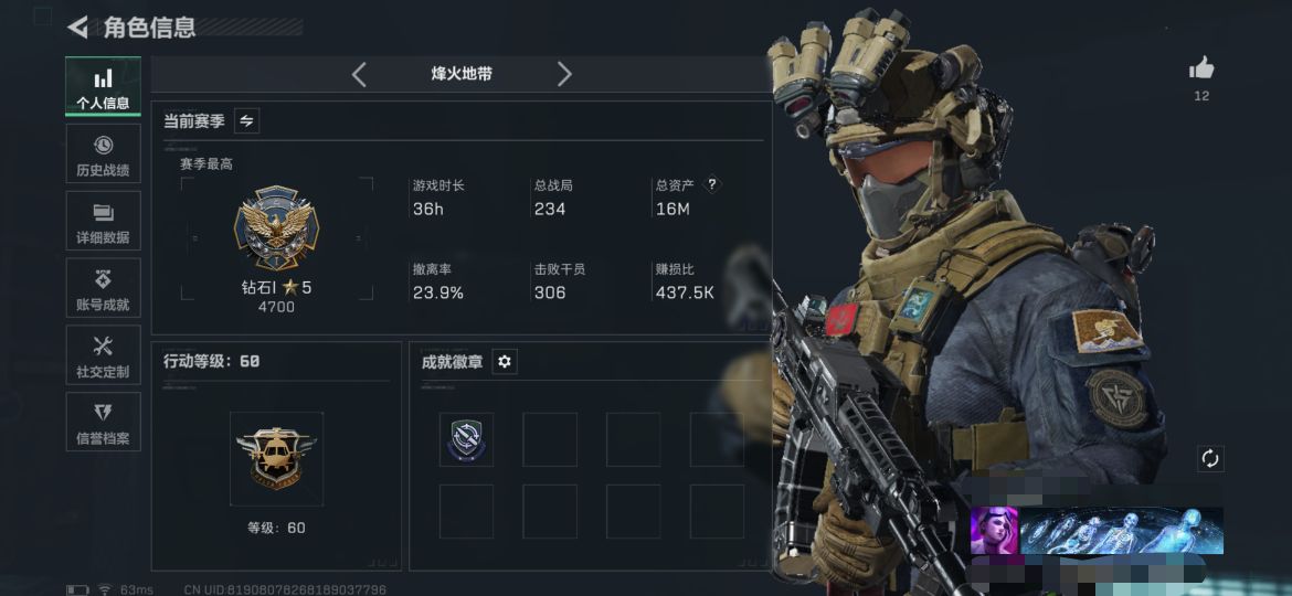XXSJZ1813【仓库价值16M 哈夫币424353 安全箱2X2 金枪14 蚀金玫瑰枪皮 干员外观:红狼-电锯惊魂】三端互通-总价值16.02M-哈夫币424.35-烽火地带等级60-烽火地带段位钻石【干员皮肤】红狼-电锯惊魂【近战武器】黑鹰【枪皮】SG552突击步枪-巨兽 ASh-12战斗步枪-碎冰行动 M4A1突击步枪-粉色涂装 M4A1突击步枪-高雅黑 M4A1突击步枪-阿米娅 M4A1突击步枪-蚀金玫瑰 AKM突击步枪-肃杀 QBZ95-1突击步枪-高雅黑 QBZ95-1突