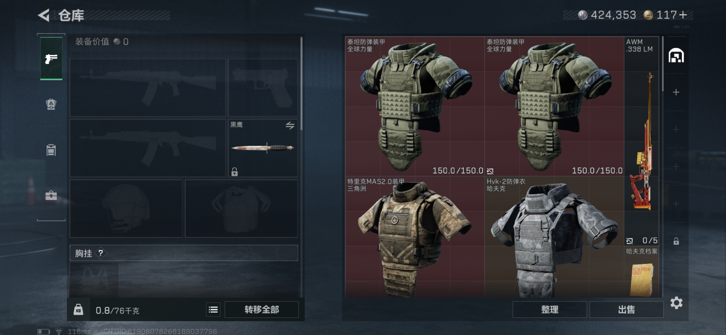 仓库价值16M 哈夫币424353 安全箱2X2 金枪14 蚀金玫瑰