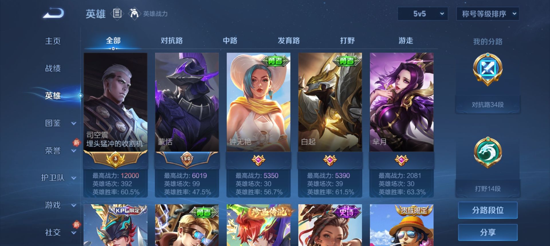 v5 1珍品 2传说 1.2w金标司空震