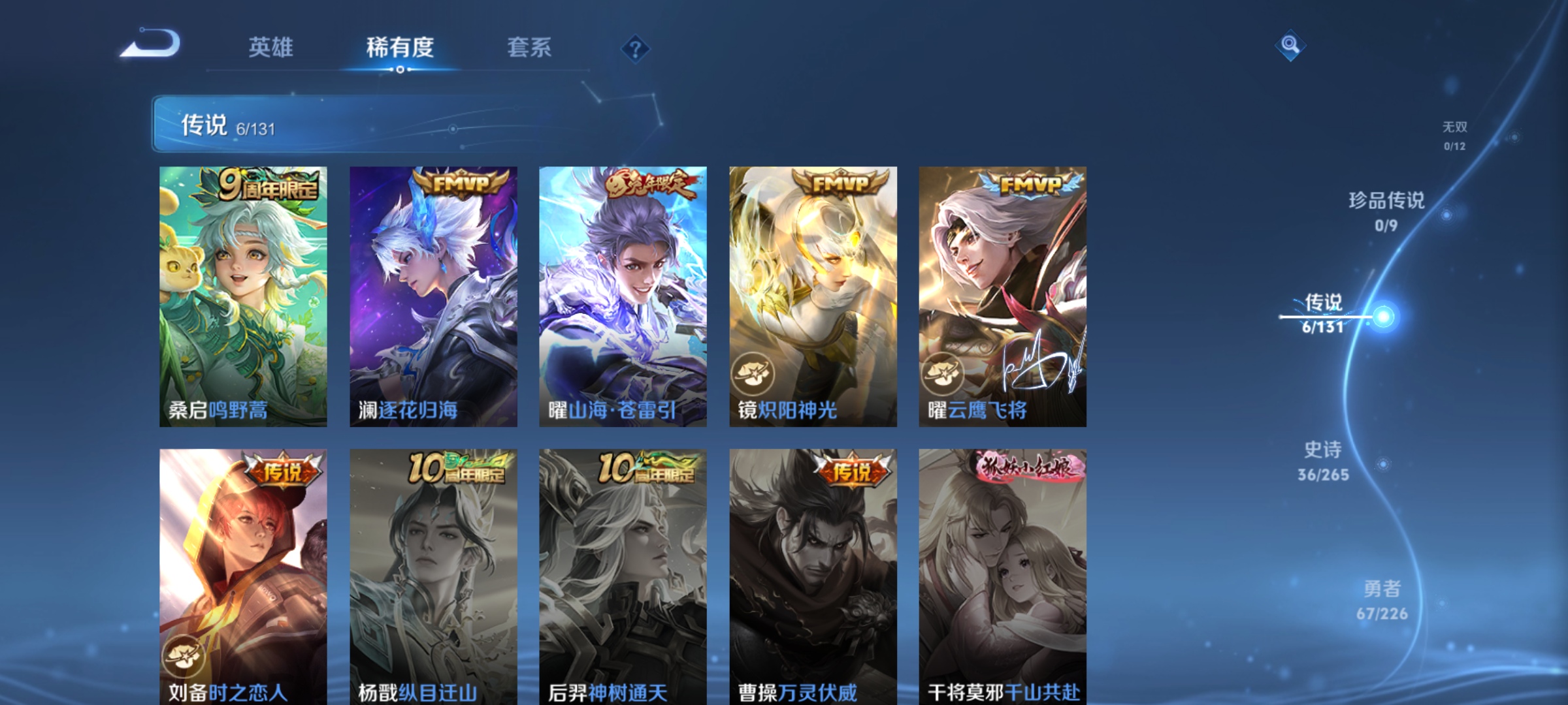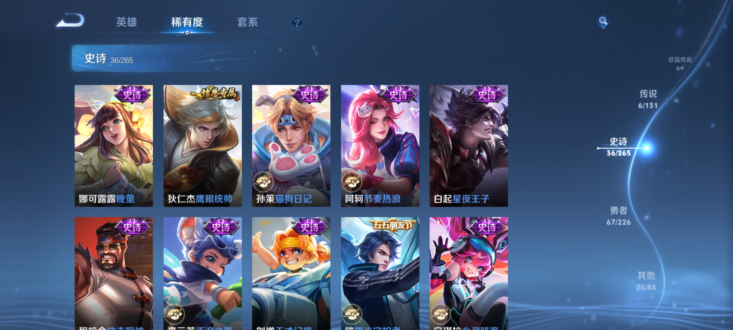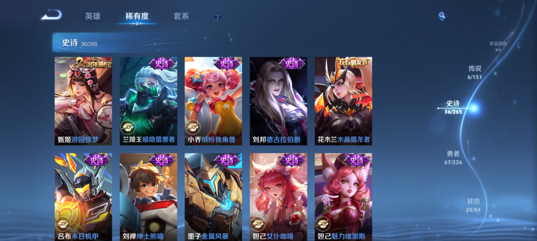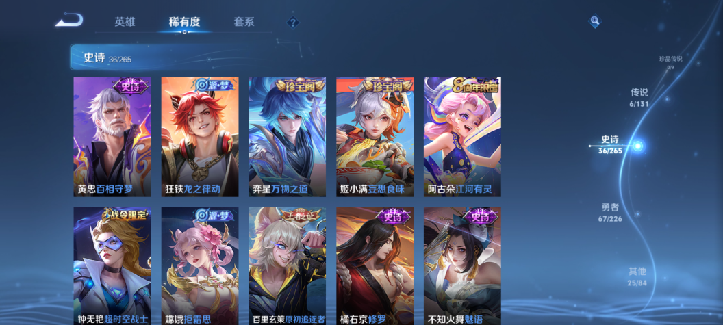 至尊星耀I-124英雄-134皮肤-6传说-36史诗