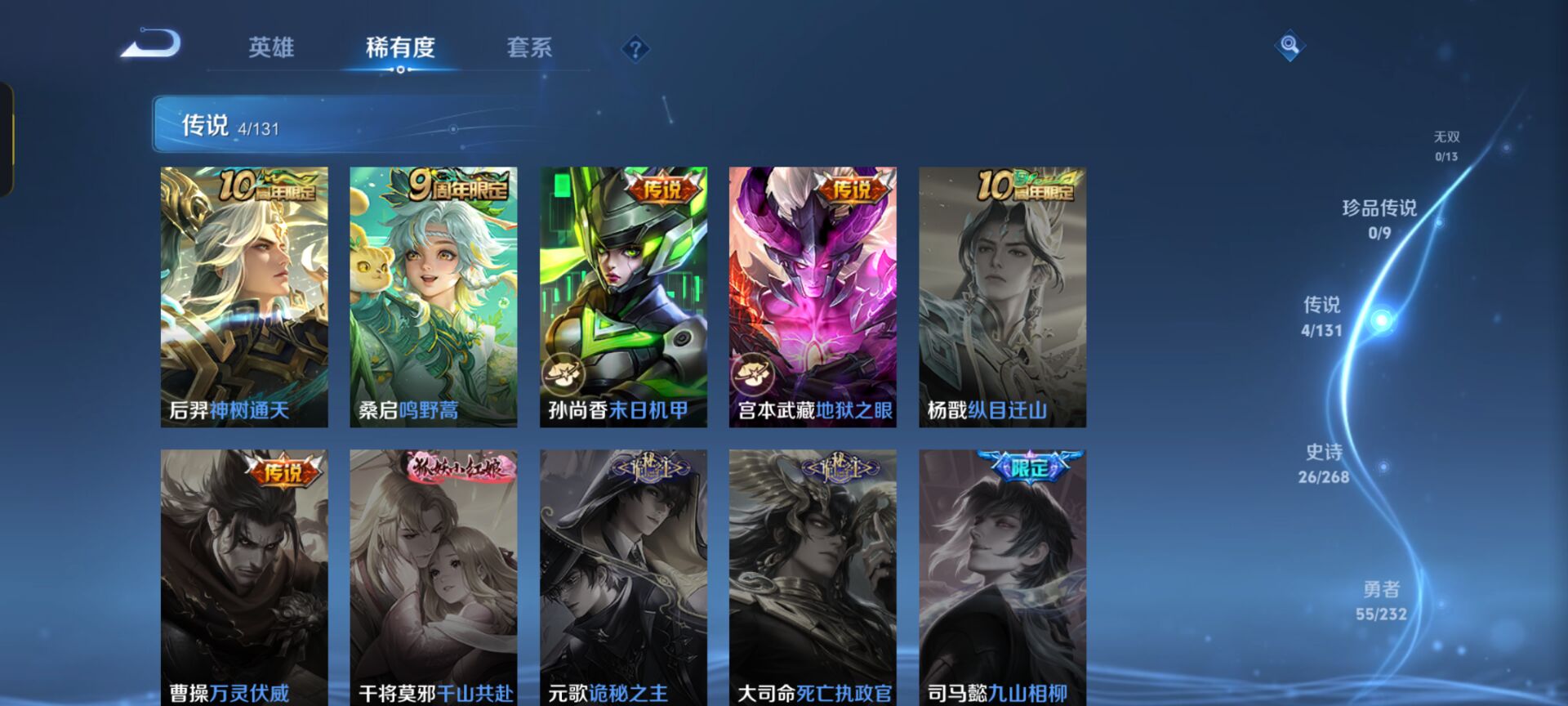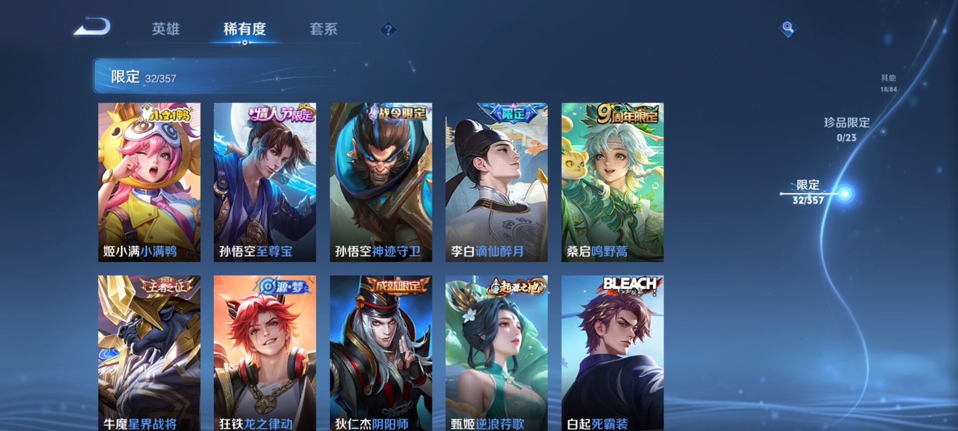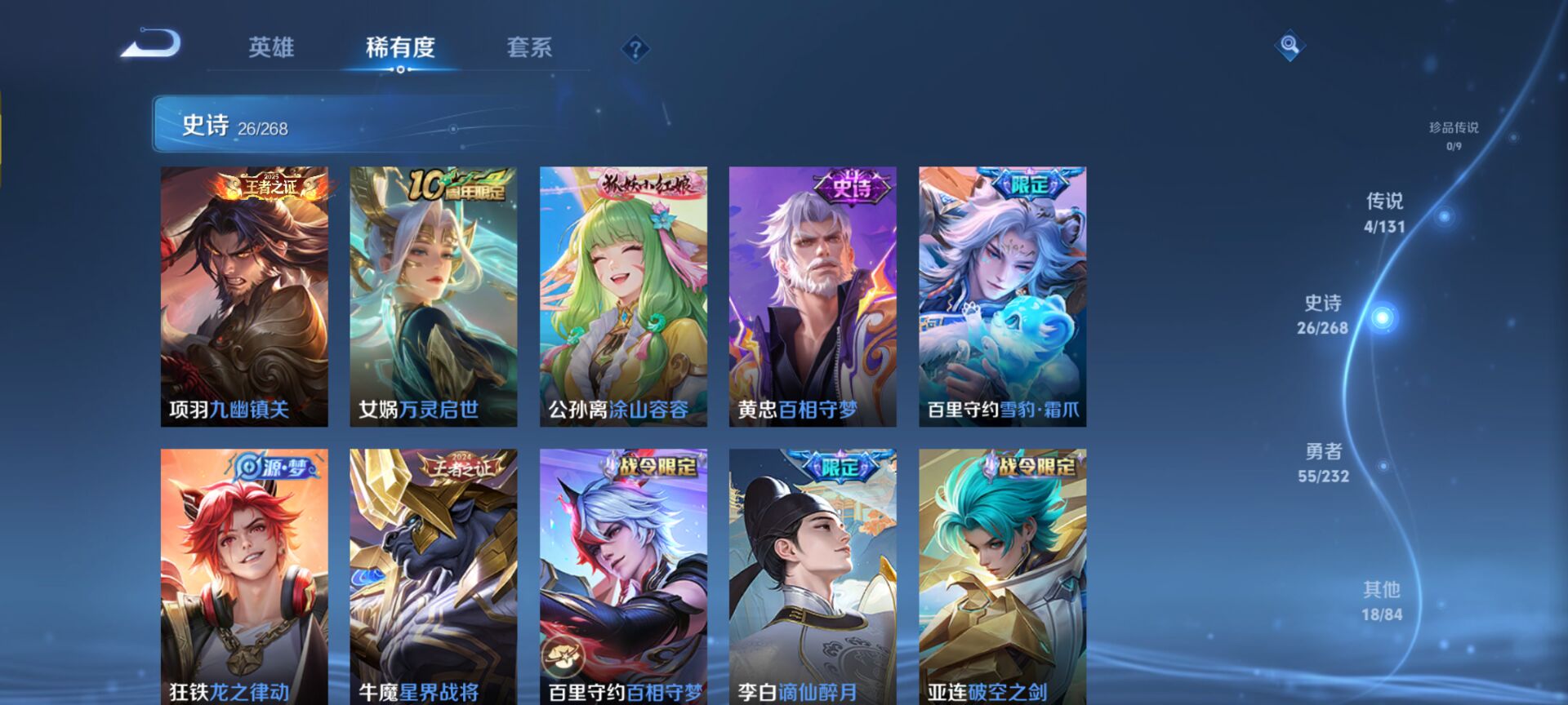 至尊星耀IV-87英雄-103皮肤-4传说-26史诗