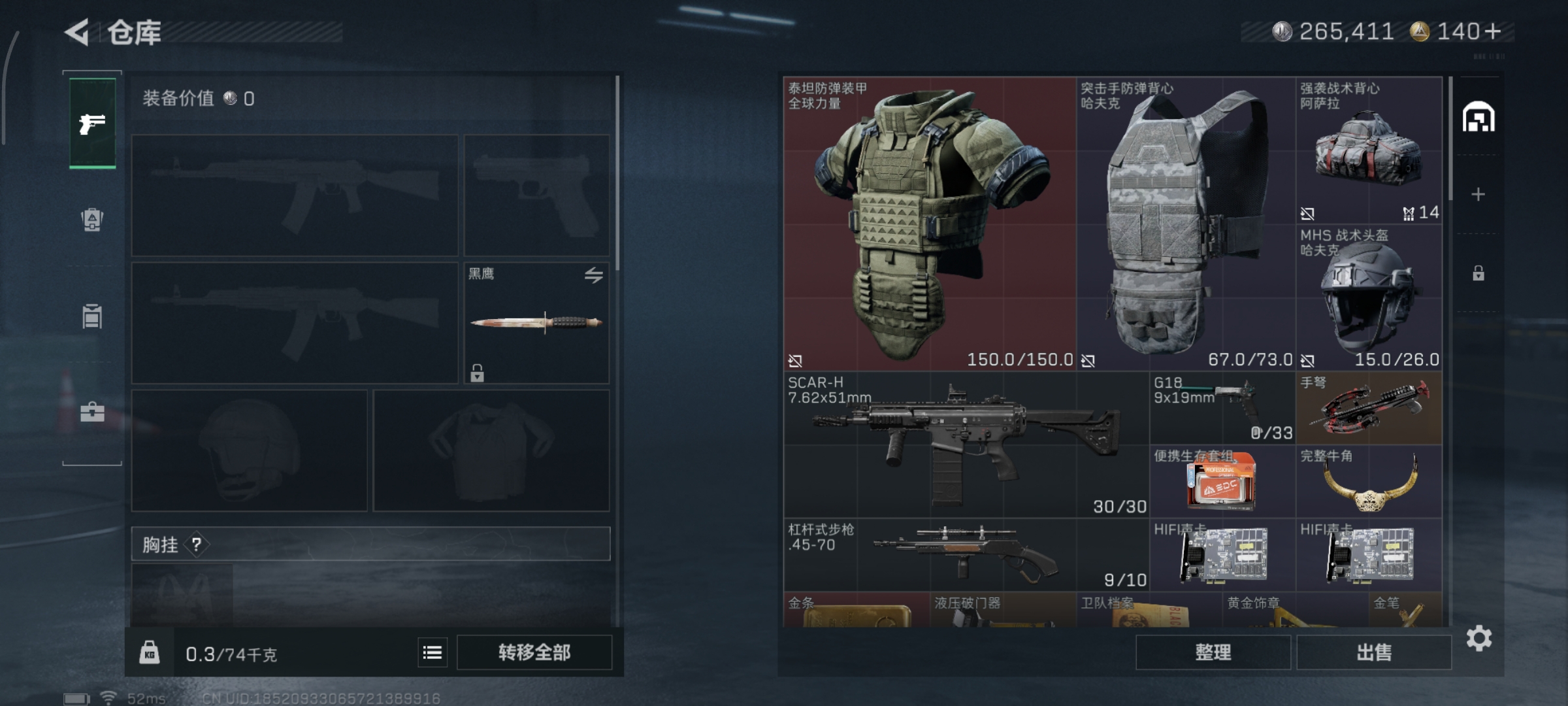 WLSJZ840三端互通-总价值6.1M-哈夫币265k-烽火地带等级54-烽火地带【近战武器】黑鹰【枪皮】M4A1突击步枪-粉色涂装 M4A1突击步枪-高雅黑 M4A1突击步枪-海色 AKM突击步枪-林中猎手 QBZ95-1突击步枪-高雅黑 QBZ95-1突击步枪-海色 QBZ95-1突击步枪-2026 AKS-74U突击步枪-冰天雪地 K416突击步枪-几何迷彩 K416突击步枪-高雅黑 M16A4突击步枪-山林猎人 M16A4突击步枪-高雅黑 AUG突击步枪-浅蓝涂装 M7战斗步枪-红色涂