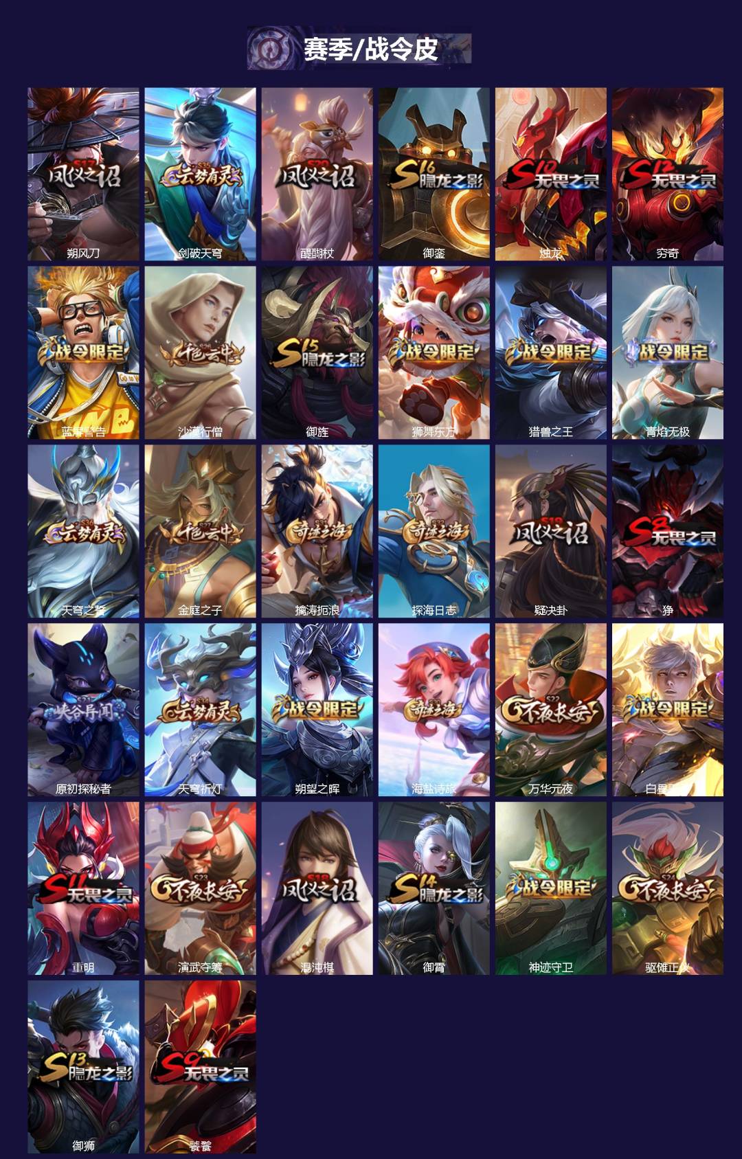 【稀有英雄】敖隐(小龙人),大司命,嬴政(始皇帝),韩信(韩跳跳),夏洛特(夏师傅),艾琳,橘右京(橘子),娜可露露(鸟人),不知火舞,赵云,金蝉(唐僧),戈娅