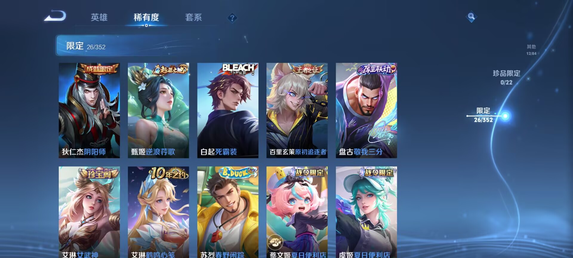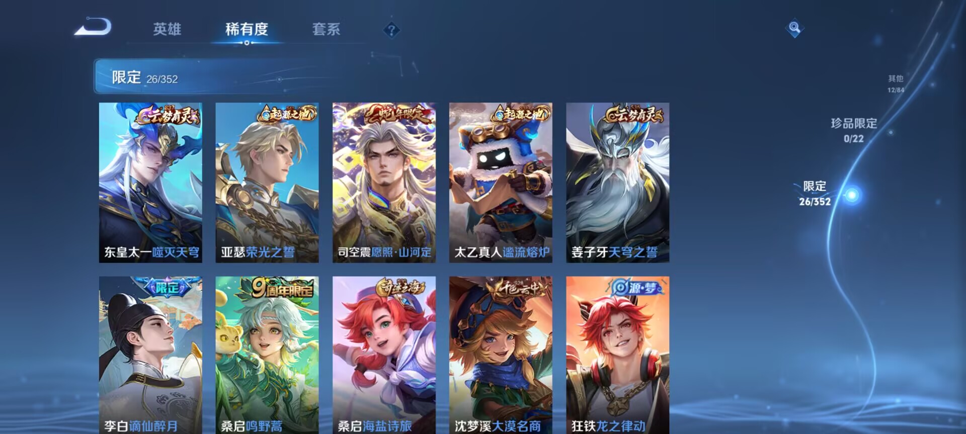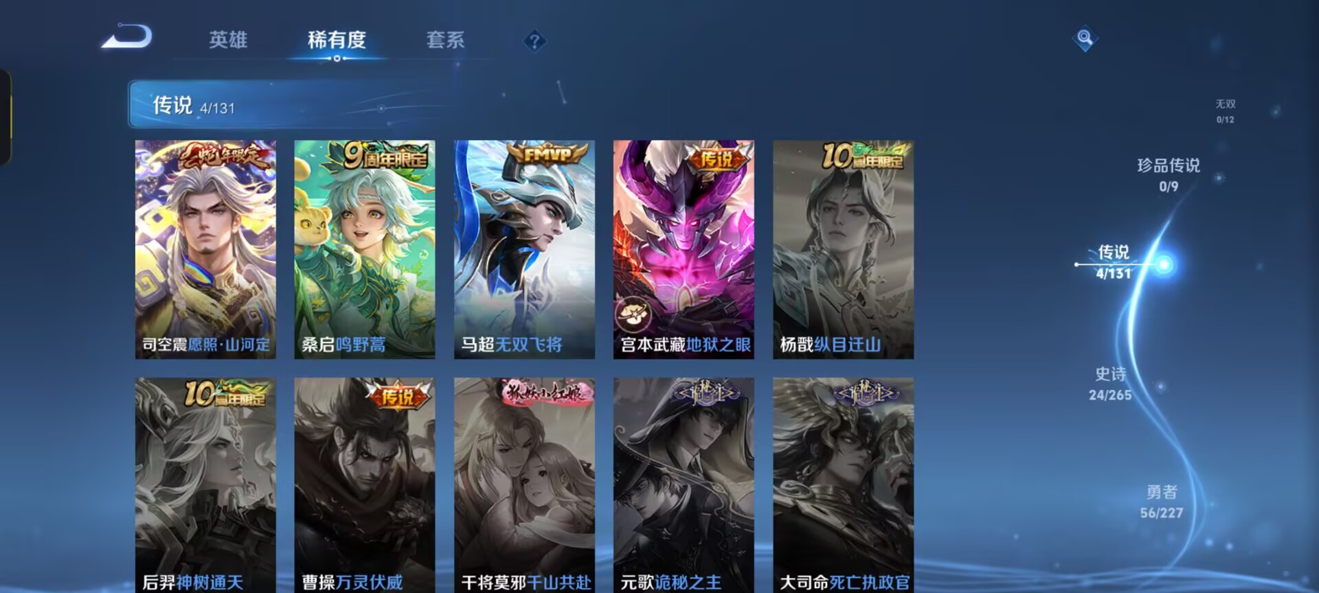 无双王者-104英雄-96皮肤-4传说-24史诗