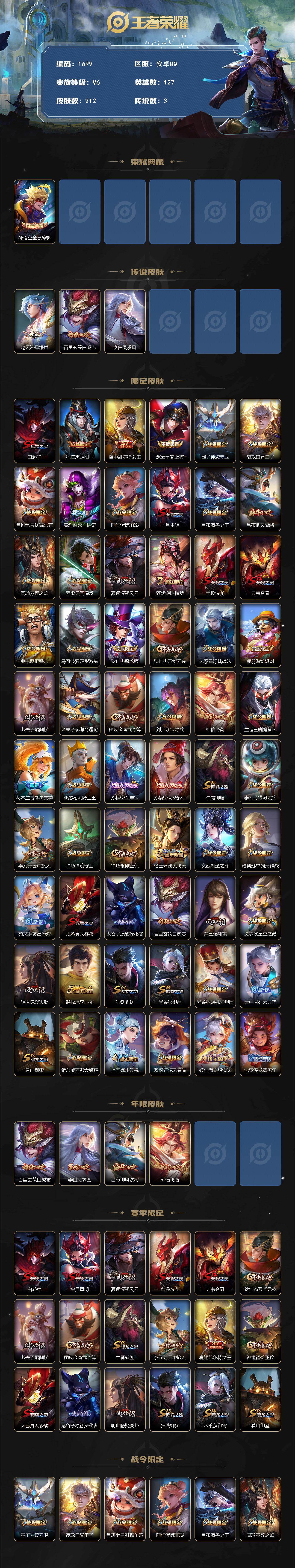 安卓Q-V6-至尊星耀V段位-127英雄-212皮肤-1典藏皮肤-3传说-49史诗